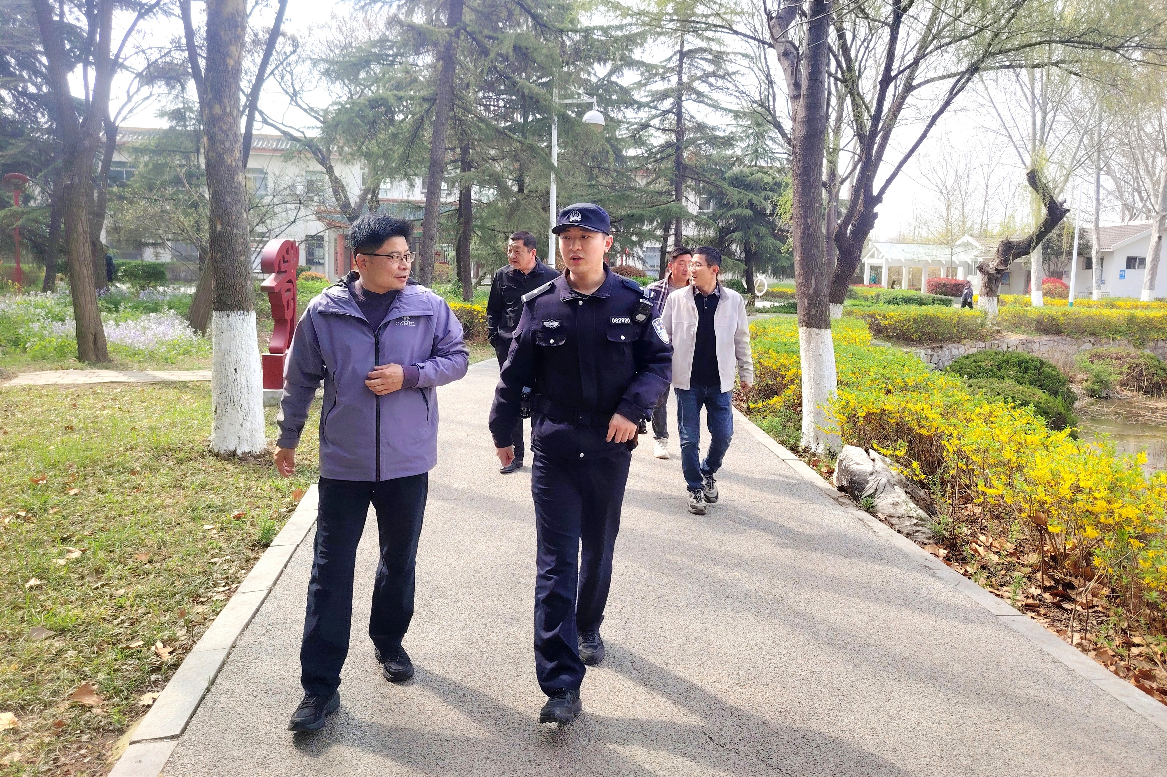 “近期游客增多,咱们要多留意园区容易发生安全隐患的角落,尤其是儿童游乐区、健身区,重点防范、留意细节,绝不能出现任何安全疏漏。”鼓楼派出所民警走进少陵公园,与公园管理处工作人员面对面交流,叮嘱日常安全管理要点,加大对公园及周边区域的巡查频次,确保每一位游客都能安心游玩。