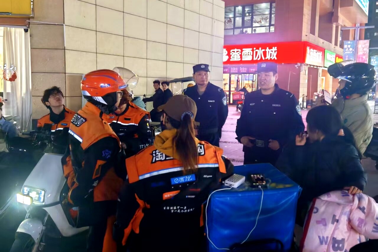 夜幕降临,兖州财富广场依旧灯火璀璨,市民休闲漫步,一派热闹祥和的景象。龙桥派出所民警结合街面巡逻防控工作,来到外卖骑手聚集的配送站点,开展精准普法宣传。针对外卖行业早出晚归、奔波忙碌的特点,民警围绕道路交通安全、电信诈骗防范、劳动权益保障等内容,通过案例讲解、现场答疑的方式,向骑手们普及安全知识。贴心细致的讲解,让骑手们在忙碌之余,收获了满满的安全与安心。