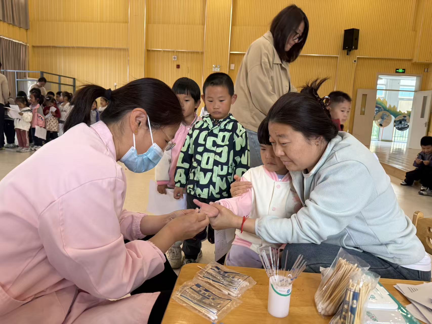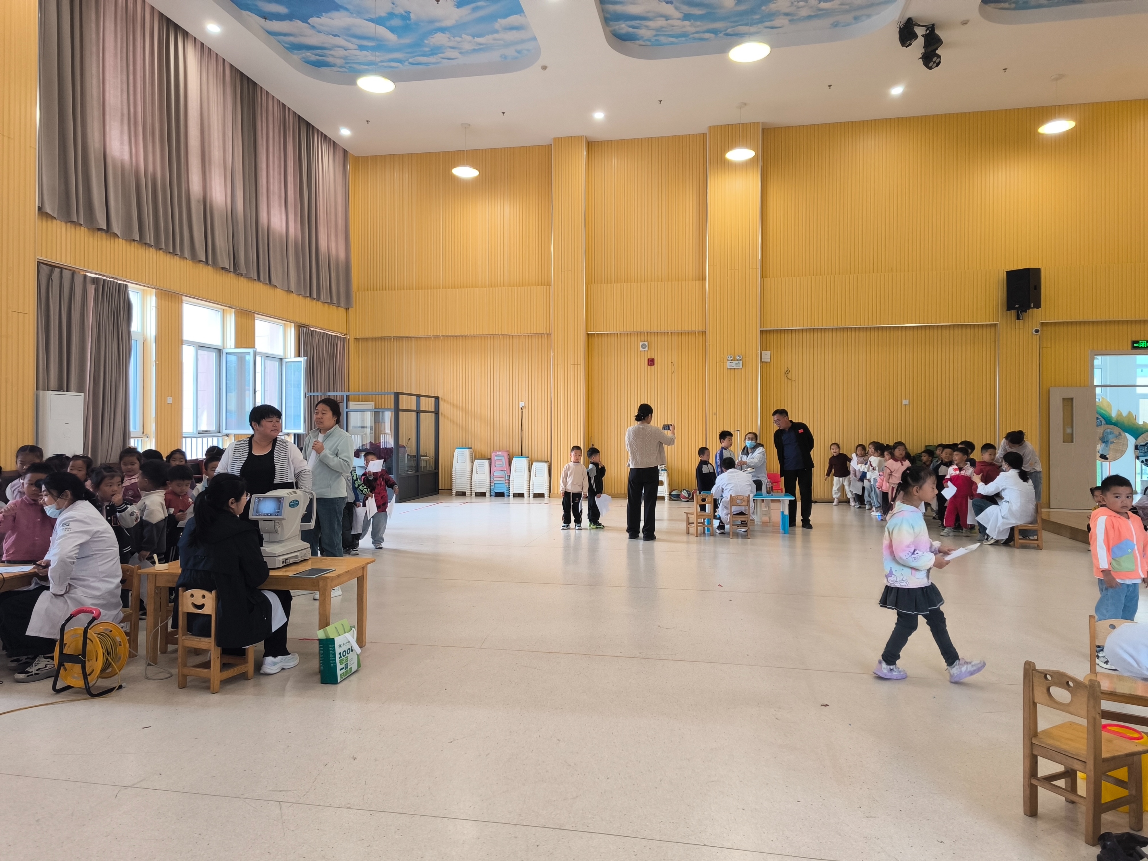 查体现场,秩序井然且暖意融融。医护人员们身着整洁工装,带着耐心与温柔,化身孩子们的“健康守护者”,有条不紊地开展各项检查工作。此次查体涵盖身高体重测量、视力筛查、口腔检查、心肺听诊、血常规检测等多个项目,全面覆盖幼儿生长发育、身体健康状况的核心监测维度,精准把控孩子们的健康动态。