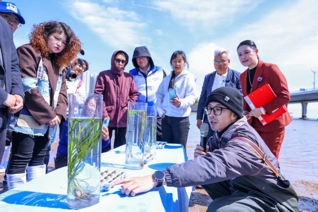 活动还举行公益歌曲《守护你》首发及使用权捐赠仪式,原创音乐人现场演唱,用歌声传递守护海洋、关爱白鲸的公益理念;“海洋十年”深蓝课堂精彩开讲,专家老师们通过标本展示、互动问答等形式,为现场师生普及海洋知识、播撒生态保护种子;在星光岛沿岸开展地球日“海底草原”志愿守护活动,并参访星光岛海洋社区。