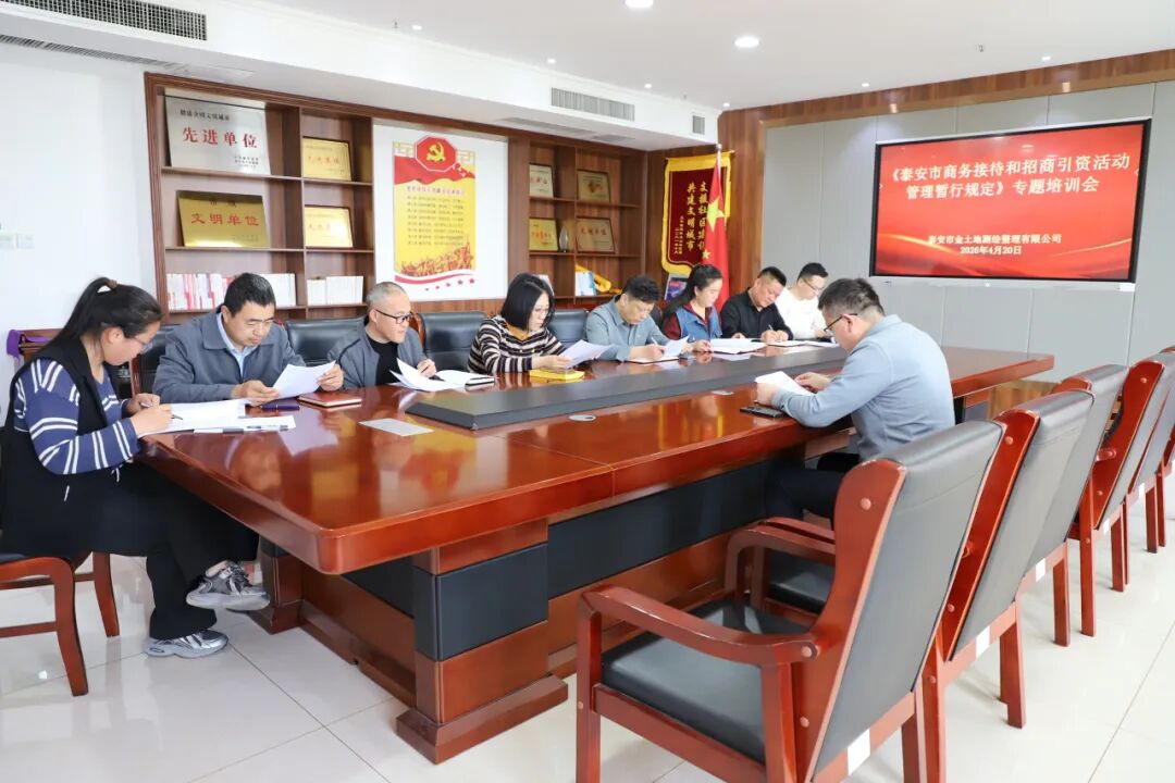 4月20日,泰安市金土地测绘整理有限公司召开《泰安市商务接待和招商引资活动管理暂行规定》专题培训会,公司分管领导及各部门负责人参加会议。