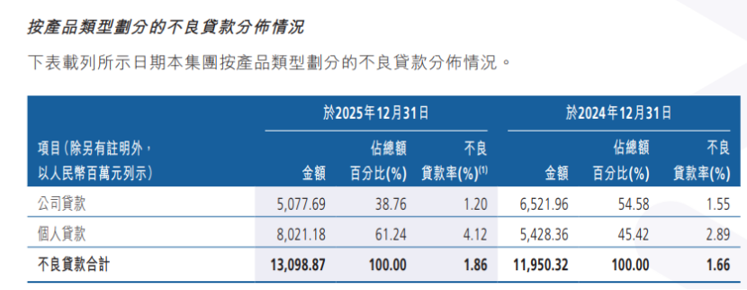 对公不良改善至1.2%,个贷风险攀升占比超六成