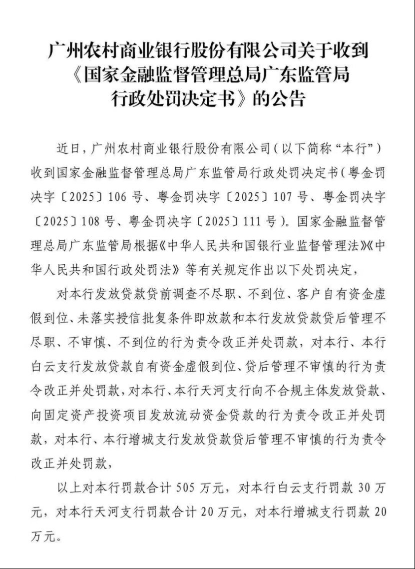 经营承压之下,广州农商行合规管理漏洞频现,2025年被监管处罚频次上升、消费者投诉量居高不下,内控合规问题持续暴露。
