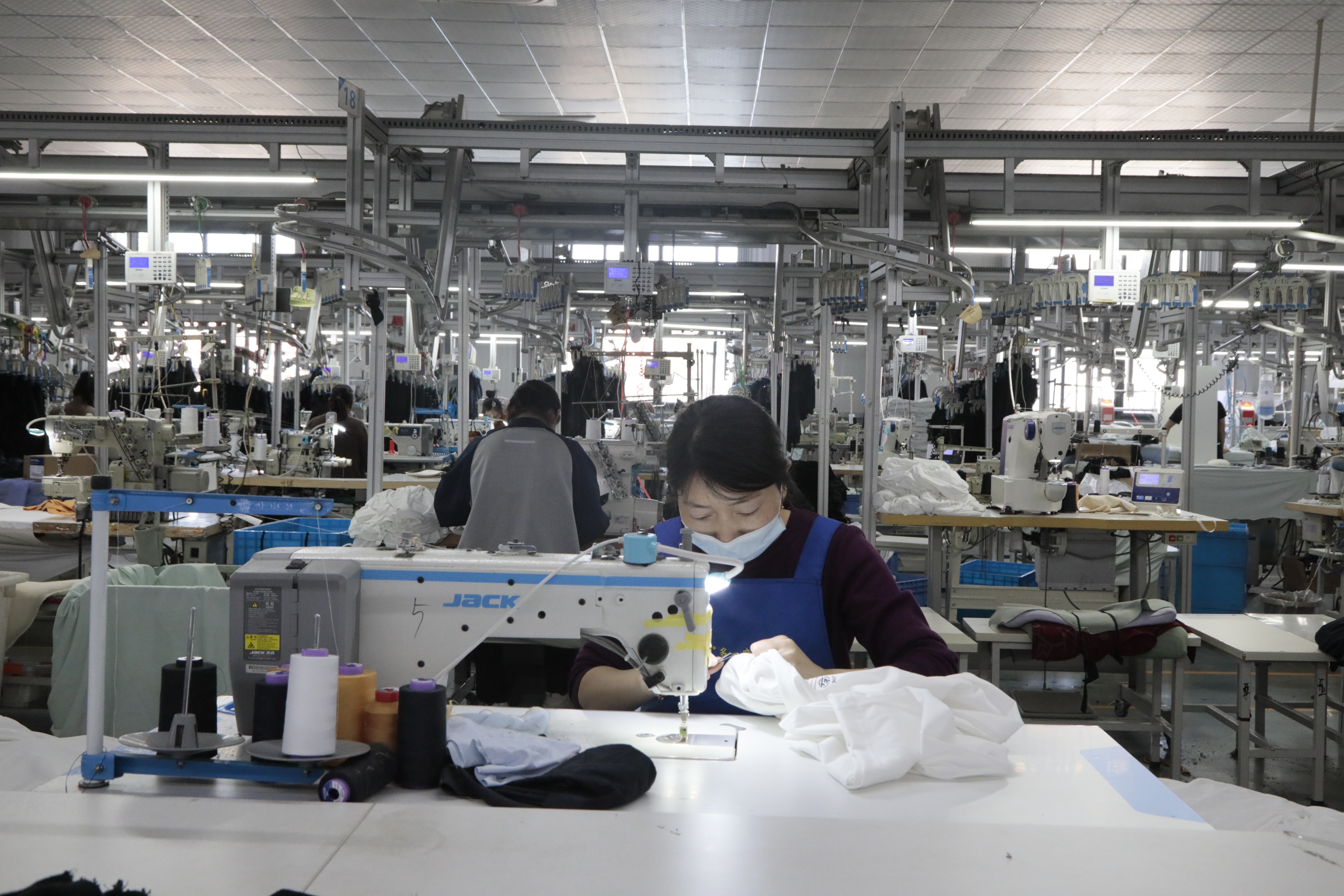 在位于岳家庄乡的山东百翔服饰有限公司,标准化厂房内同样是一派繁忙景象。4 条生产线高速运转,工人们熟练地操作着缝纫机,一件件设计新颖、做工精良的体育服饰在流水线上陆续成型。