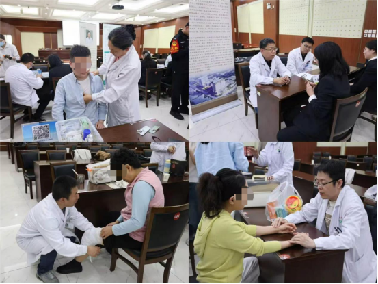 义诊环节,由内分泌二科、骨伤四科、针灸三科、风湿免疫科、肝病科、皮肤科、肛肠科、美容养生门诊、中医护理门诊骨干专家组成的团队,为干警提供量血压、测血糖、中医把脉、体质辨识、针灸、浮针等一站式健康服务。专家们耐心问诊、细致查体,针对性解答颈肩腰腿痛、慢病管理、皮肤调理、肛肠健康等常见问题,给出个性化诊疗与养生建议,中医适宜技术深受好评。药学部专家现场展示医院中药自制制剂,并提供特色代茶饮品鉴,普及中药合理使用与养生茶饮知识;拥军服务办公室现场讲解拥军优待政策,传递尊崇与关怀;互联网医院工作人员手把手指导线上问诊、预约检查、报告查询等操作,让干警足不出户即可享受便捷就医服务。