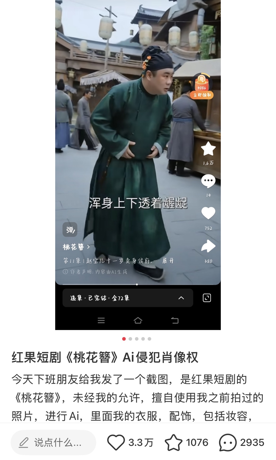 更极端的情况是直接“盗脸”。有汉服妆造师发现自己的脸被直接盗用于剧中一个“猥琐好色”的反派角色,而他从头到尾毫不知情。更隐蔽的是,AI“融脸”“垫图”技术让侵权方可以将抓取的人脸混合后生成新形象,并辩称“这不是你”。一旦人脸被充分融合、难以辨认,普通人维权时就面临取证难、认定难甚至无法立案的困境。