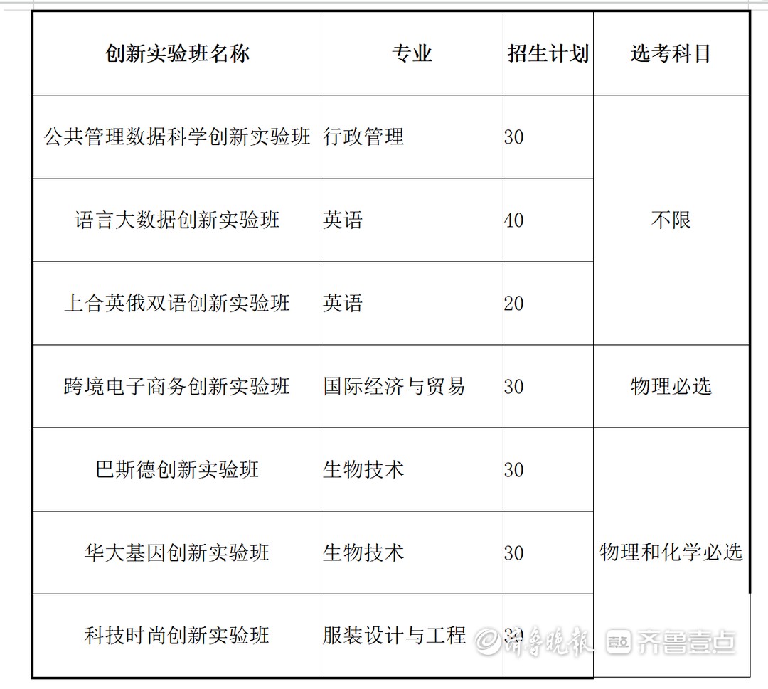 招生简章显示,2026年青岛大学综合评价招生继续设立7个创新实验班,总计划210人,与2025年完全一致。招生专业涵盖行政管理、英语(2个方向)、国际经济与贸易、生物技术(2个方向)、服装设计与工程。
