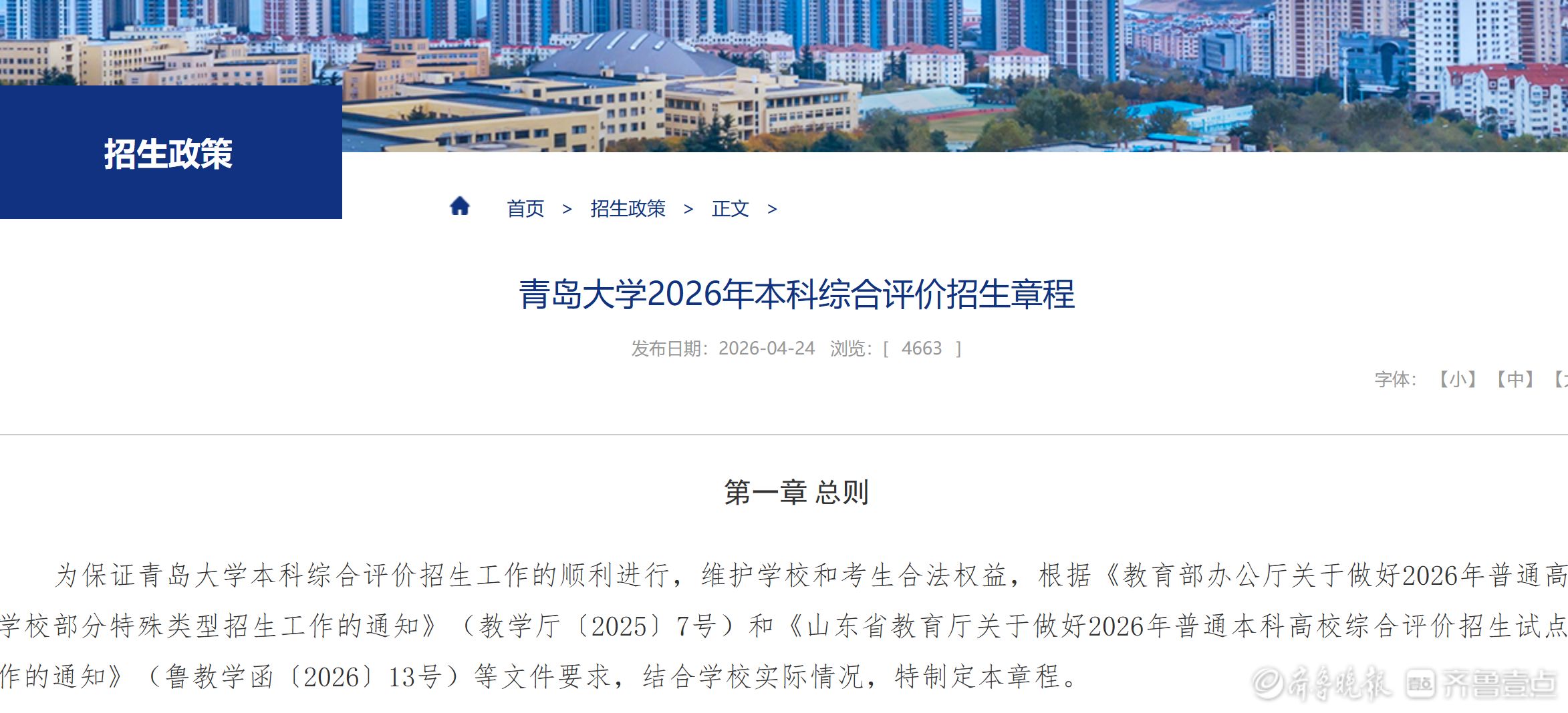 作为山东省综合评价招生试点高校,青岛大学今年综招政策调整紧扣教育部“淡化学科竞赛导向”要求,向更多综合素质优秀的普通考生敞开大门。