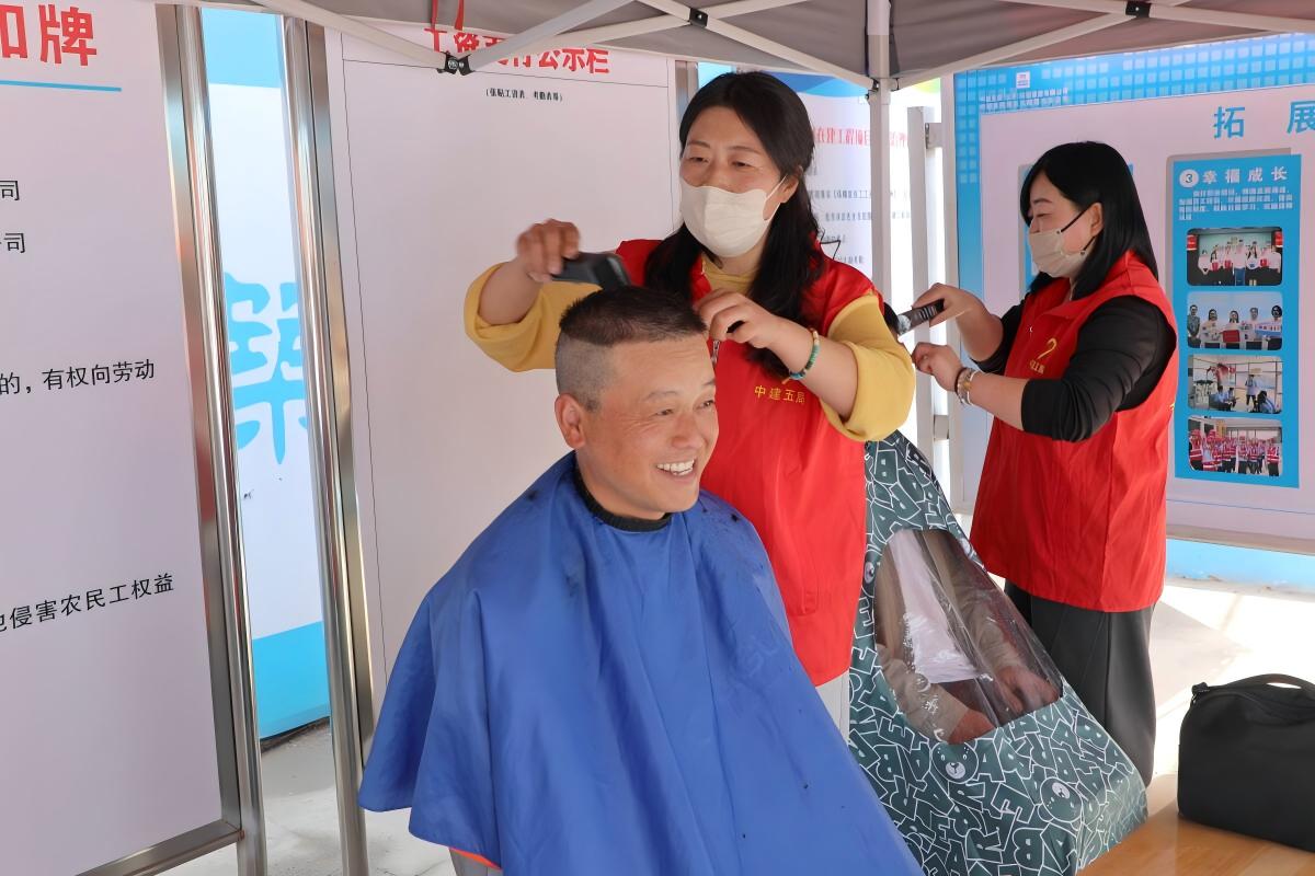 暖心服务同样送到了工人身边。现场设置了免费义诊、爱心理发、反诈培训等贴心环节,医护人员细致问诊,理发师精心修剪,民警耐心讲解反诈知识,把“健康、技能、平安”送到工人身边。区总工会还为一线产业工人发放慰问品,致敬用汗水浇筑城市美好的劳动者。一位产业工人笑着说:“我们会把这份温暖转化为工作动力,用心打造放心工程。”