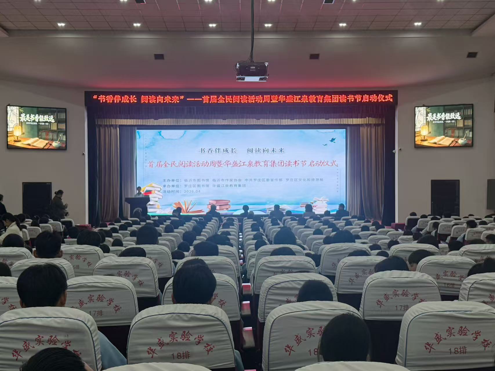 4月22日下午,罗庄区首届全民阅读活动周暨华盛江泉教育集团读书节启动仪式在华盛实验学校举行。