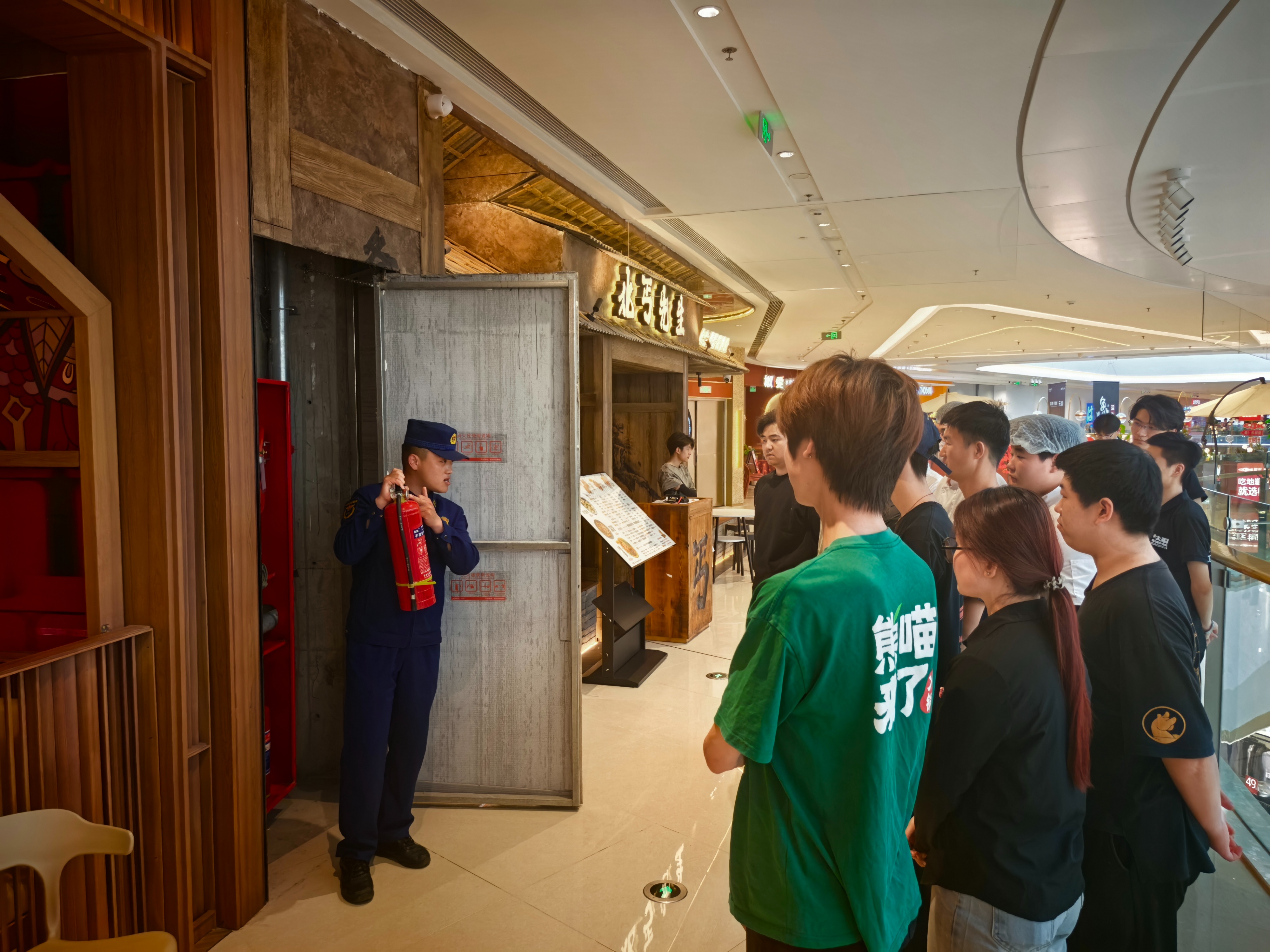 在商场,宣讲围绕人员密集场所应急处置展开实操教学。针对商场客流密集、用火用电点多的特点,现场演示消火栓“开、接、开、射”四步法,明确疏散通道、安全出口保持畅通的硬性要求。同步普及公共区域防火注意事项,结合商圈节假日客流特点,讲解紧急情况下的有序疏散策略,让商户与顾客共学消防知识,共建安全购物环境。
