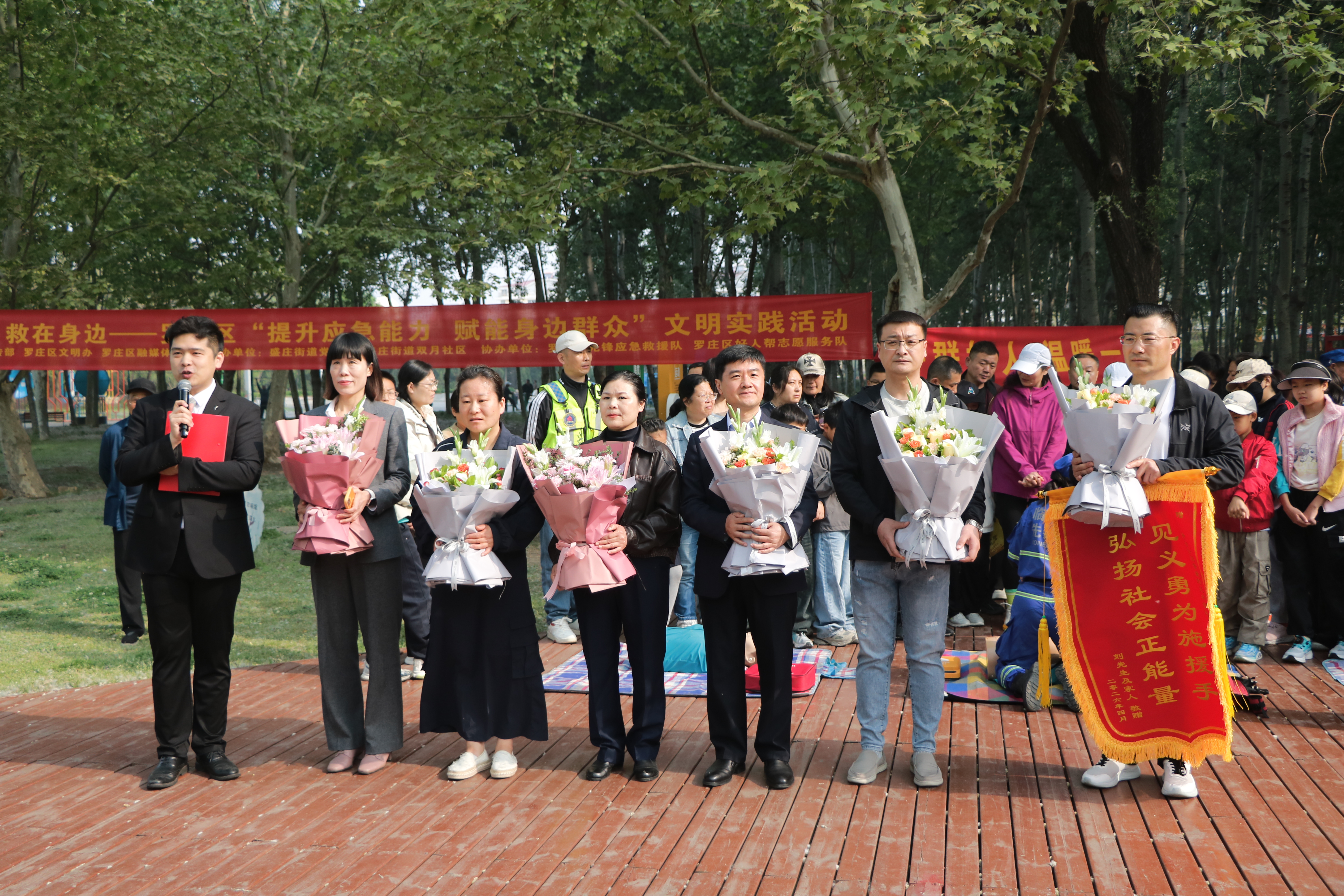 随后,罗庄区“好人帮”志愿服务队的队员们向好人群体献上鲜花,致敬这份平凡中的伟大。好人代表李金芳现场发出倡议,号召全区市民学习好人精神,争做善意的传递者。