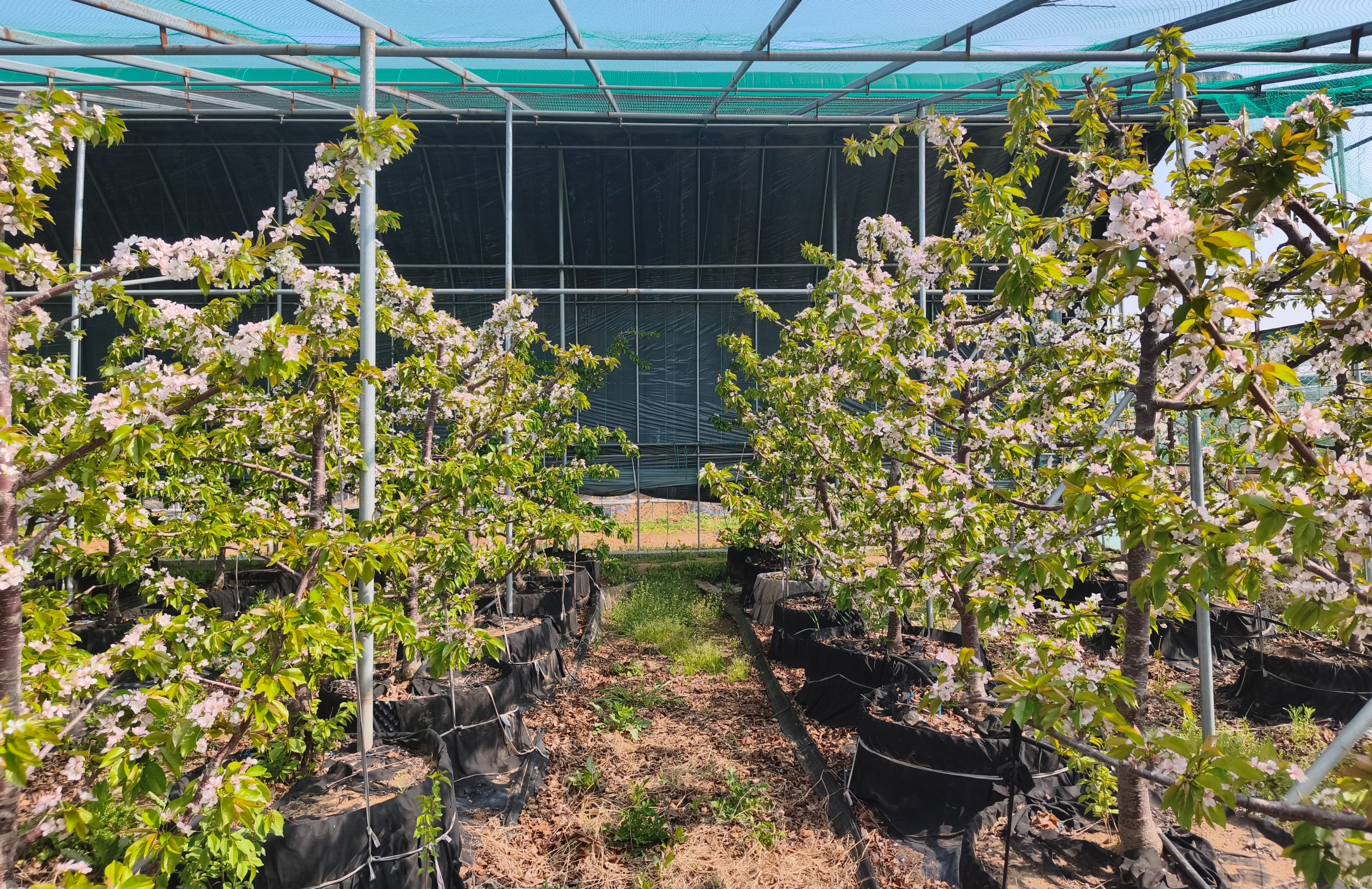 为了直观感受差异,姜广学带记者走进相邻的传统乔化种植区。3.5米高的樱桃树下立着攀爬梯,与矮化密植大棚形成鲜明对比。“现在全区70岁以上果农占比近80%,如果是矮化密植,果农就不用爬高了,管护、授粉都省劲儿,整个种植过程能节省30%的人力。”