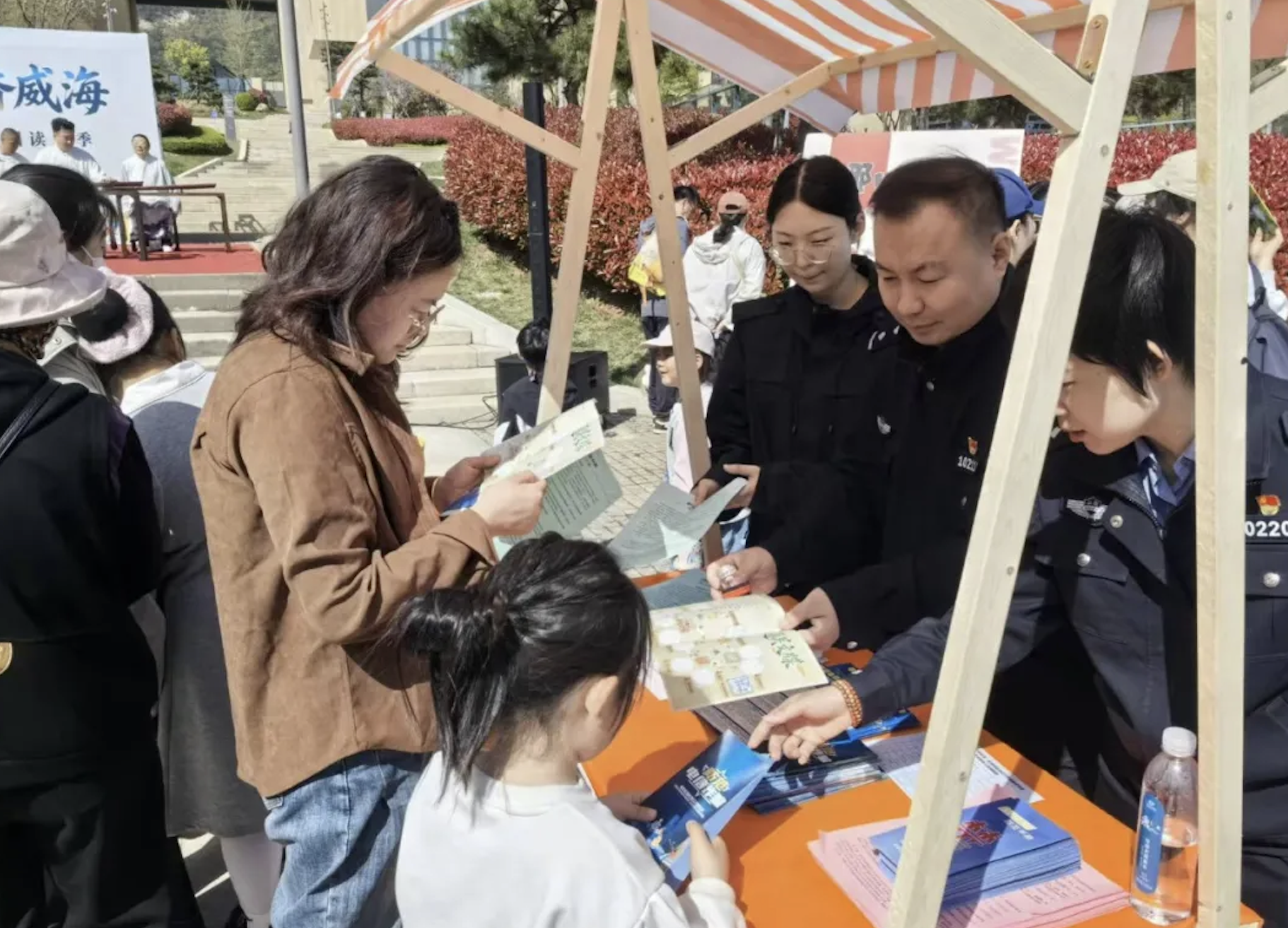 4月19日上午,威海市图书馆北侧绿轴广场人声鼎沸、墨香盈袖——正值“书香威海·文韵市集”全民阅读周期间,一场别开生面的“反诈与网络安全教育”主题宣教活动火热展开。威海市公安局环翠分局崂山路派出所联合分局经侦大队、网安大队、刑警大队反诈中队及禁毒中队民警,以“孤注一掷,投壶挑战”为创意内核,推动安全防范知识从“纸上”落到“掌上”,从“会场”走进“市集”,让法治温度浸润城市烟火气。