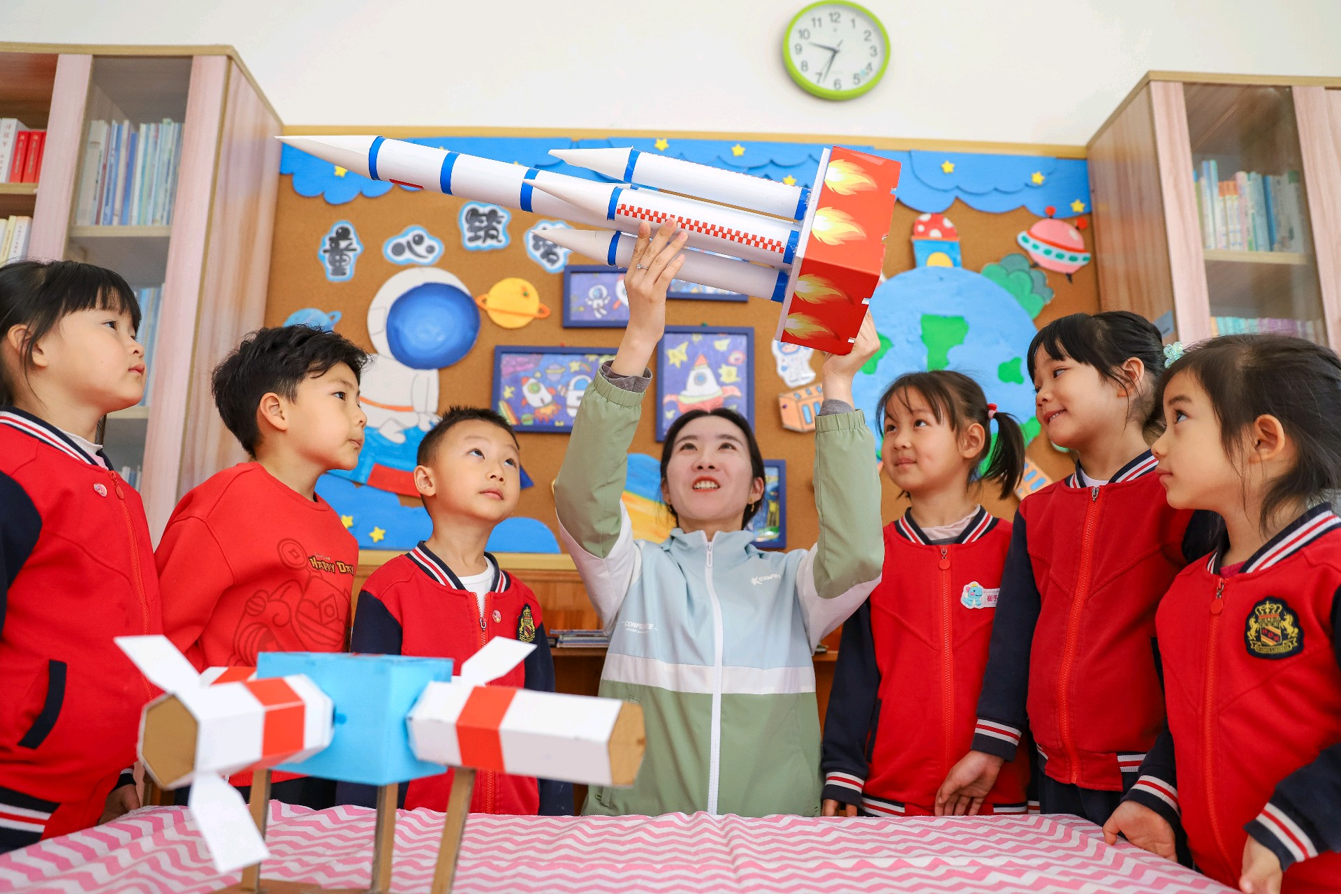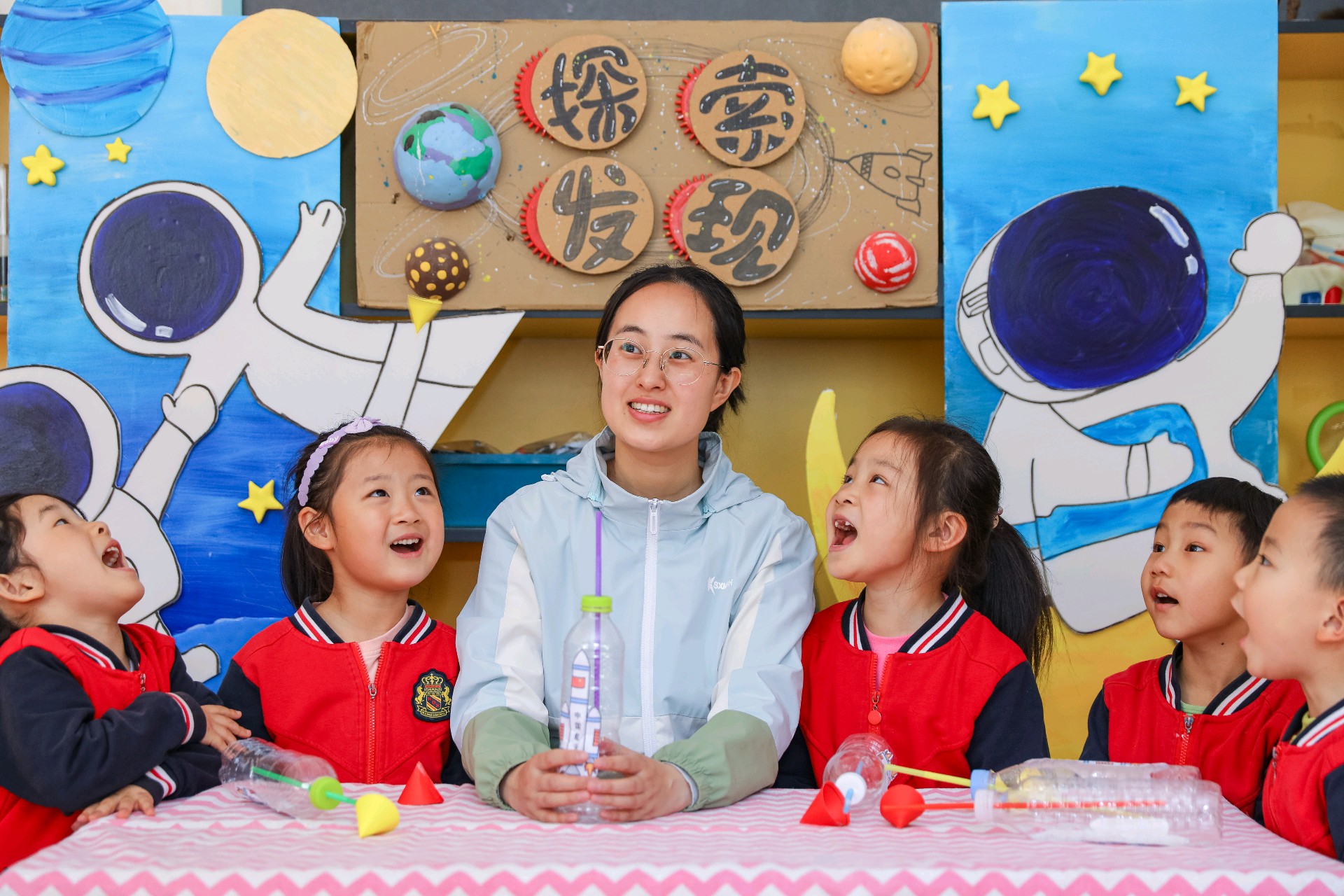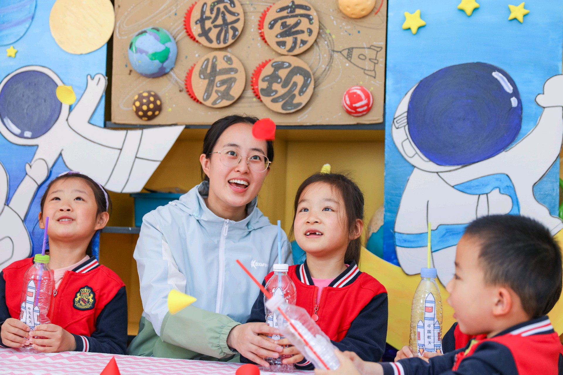 2026年4月24日,在第十一个“中国航天日”当天,青岛市李沧区青峰路幼儿园里上演了一场“硬核”又可爱的航天科普活动。一群平均年龄只有5岁的萌娃,通过“火箭发射”小实验、学习航天知识、创作航天主题作品等环节,亲身体验了一把“送火箭上天”的乐趣。孩子们在动手实践中走近航天科技,让探索宇宙的梦想从童年启航。(大众新闻记者张晓帆通讯员张鹰)
