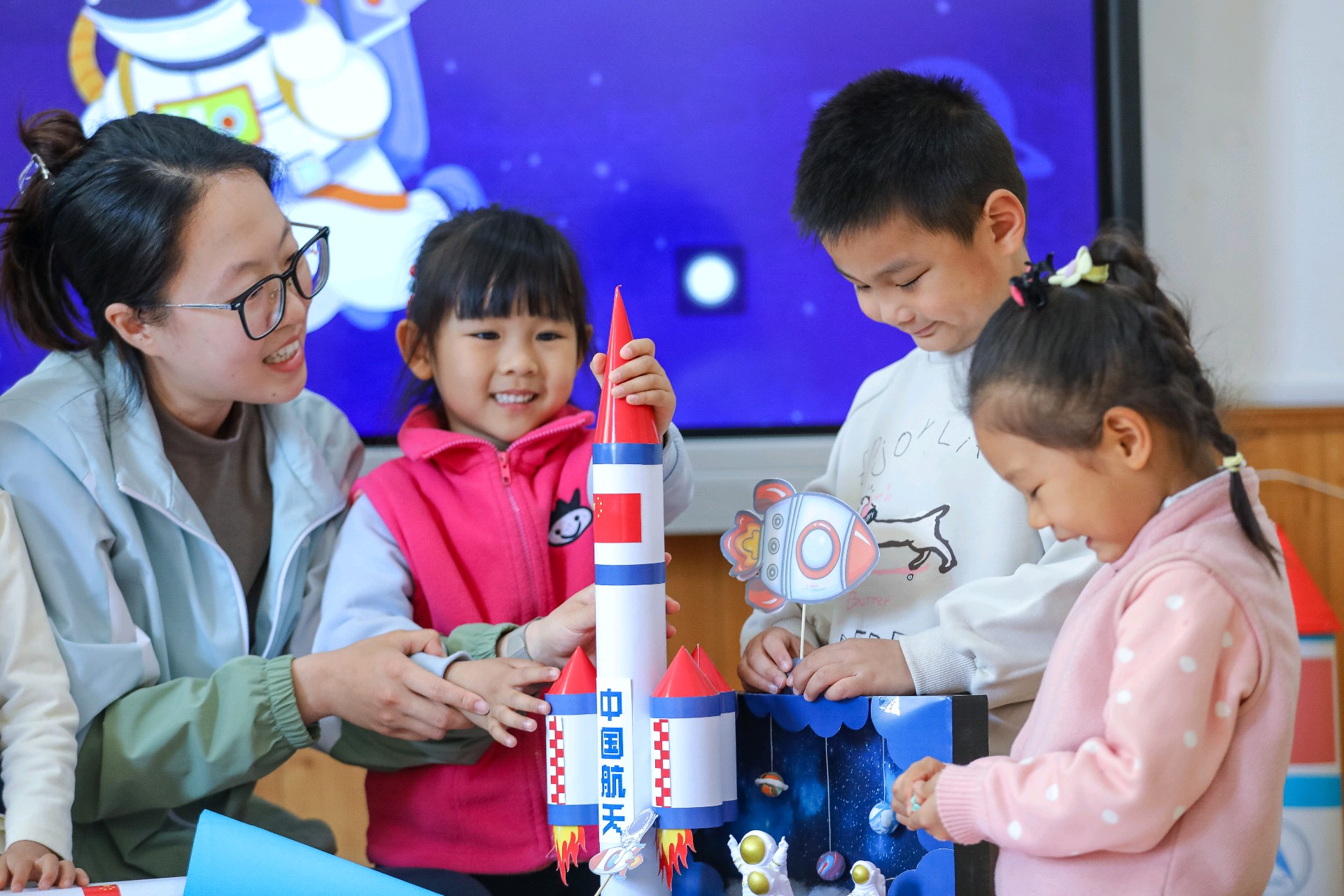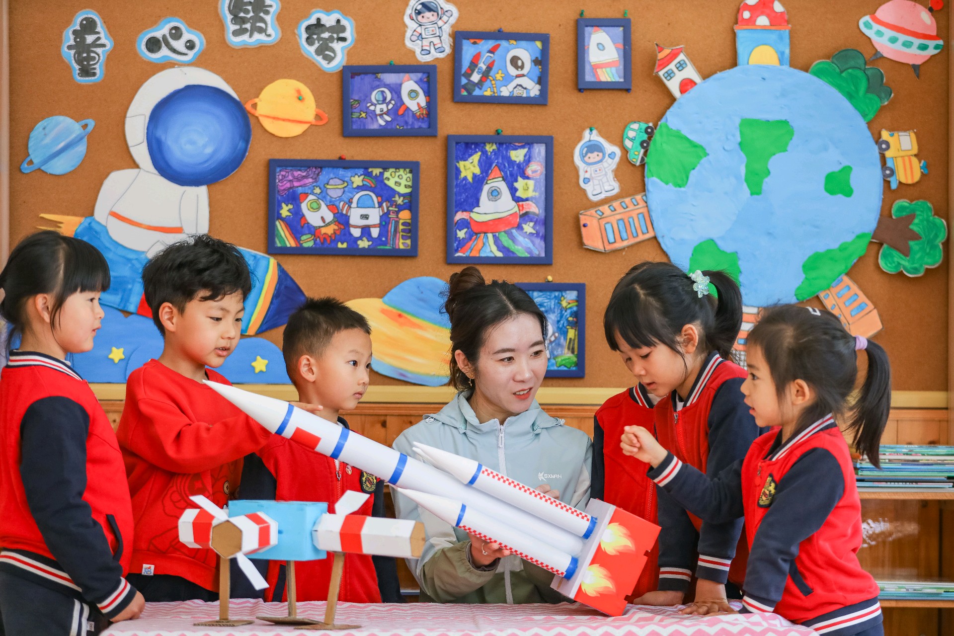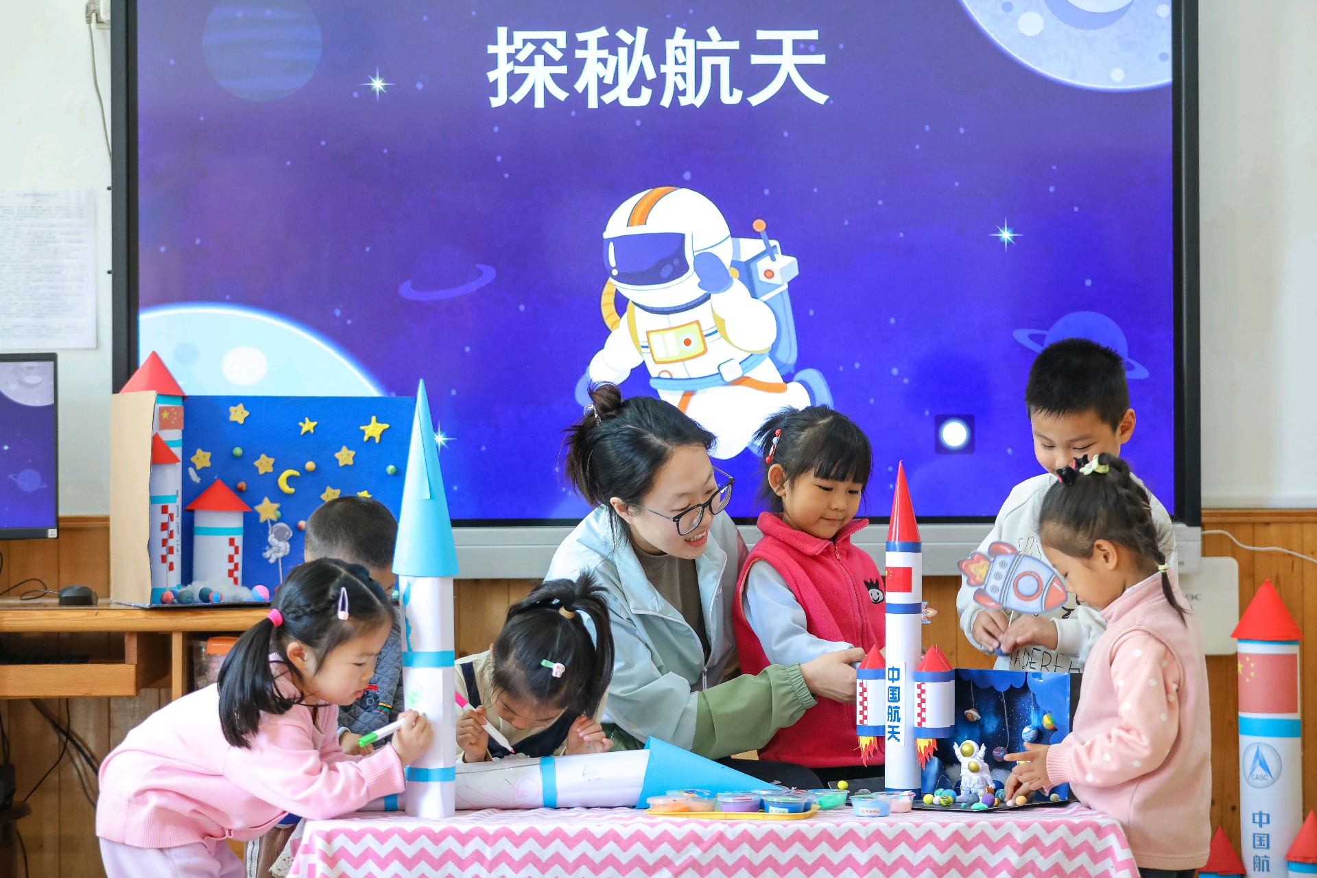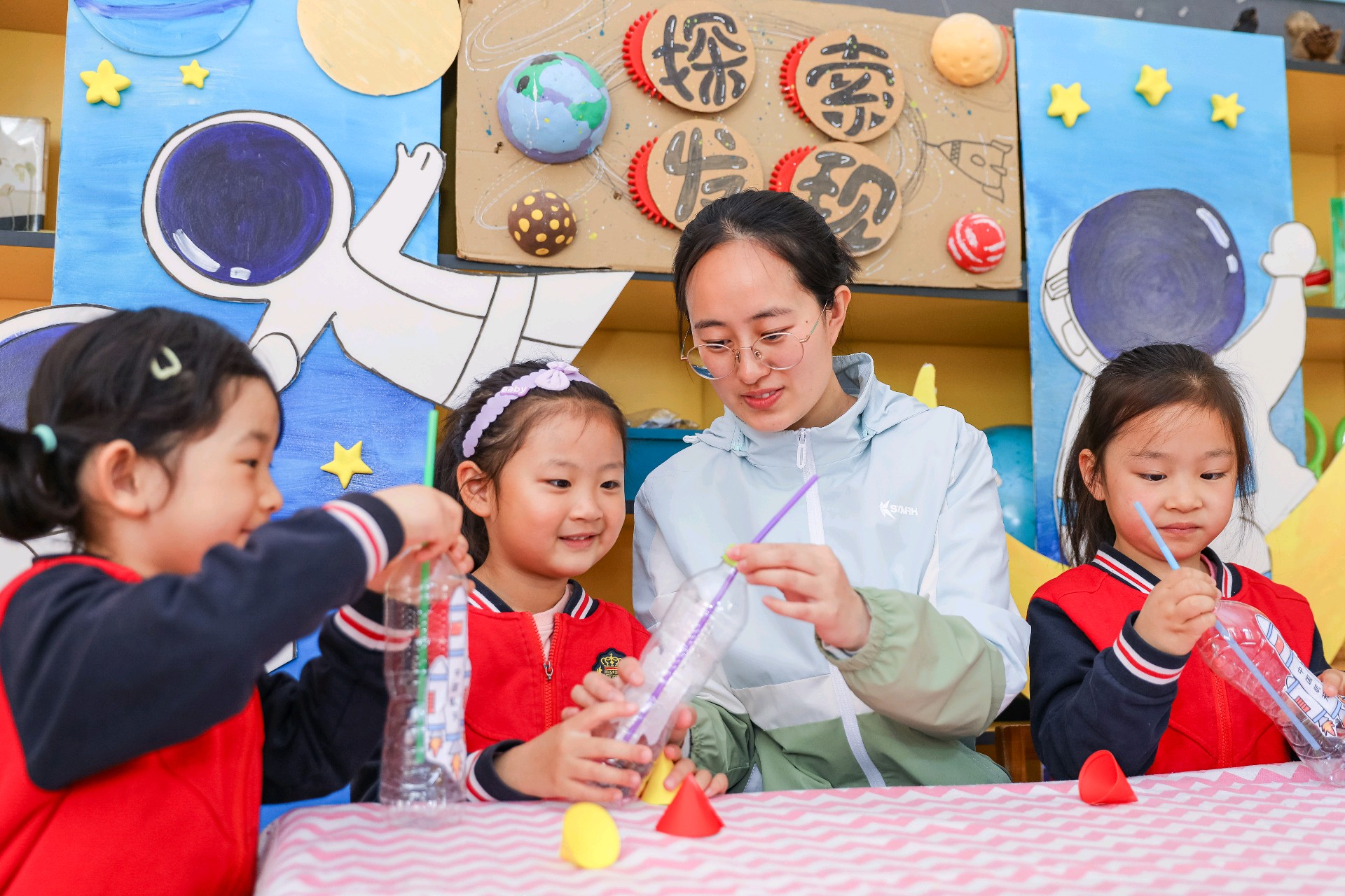 2026年4月24日,在第十一个“中国航天日”当天,青岛市李沧区青峰路幼儿园里上演了一场“硬核”又可爱的航天科普活动。一群平均年龄只有5岁的萌娃,通过“火箭发射”小实验、学习航天知识、创作航天主题作品等环节,亲身体验了一把“送火箭上天”的乐趣。孩子们在动手实践中走近航天科技,让探索宇宙的梦想从童年启航。(大众新闻记者张晓帆通讯员张鹰)