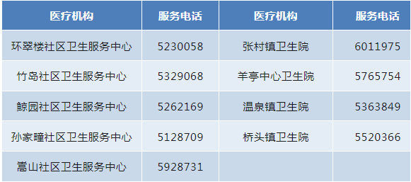 环翠区各基层医疗机构服务电话 (便于就近咨询)