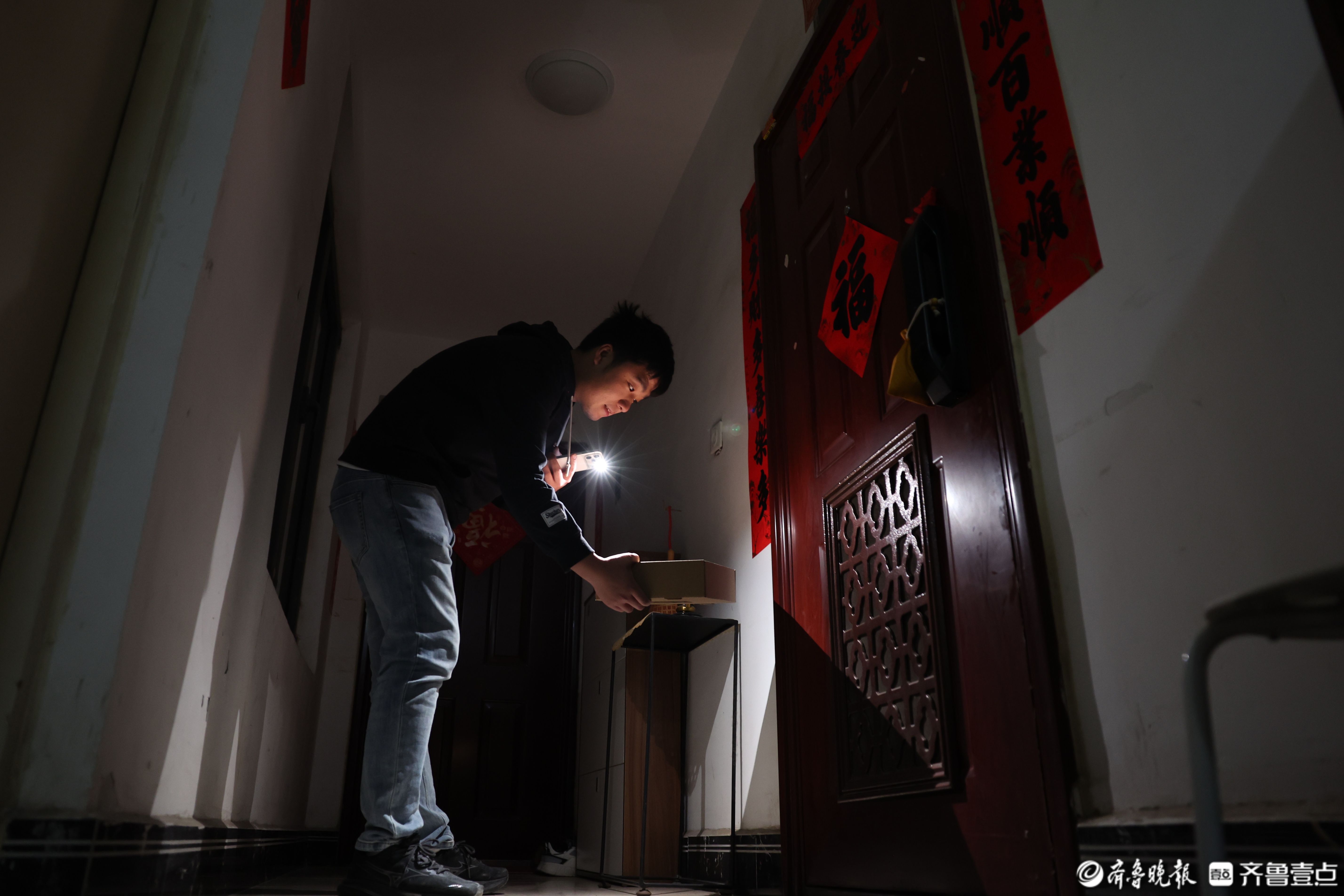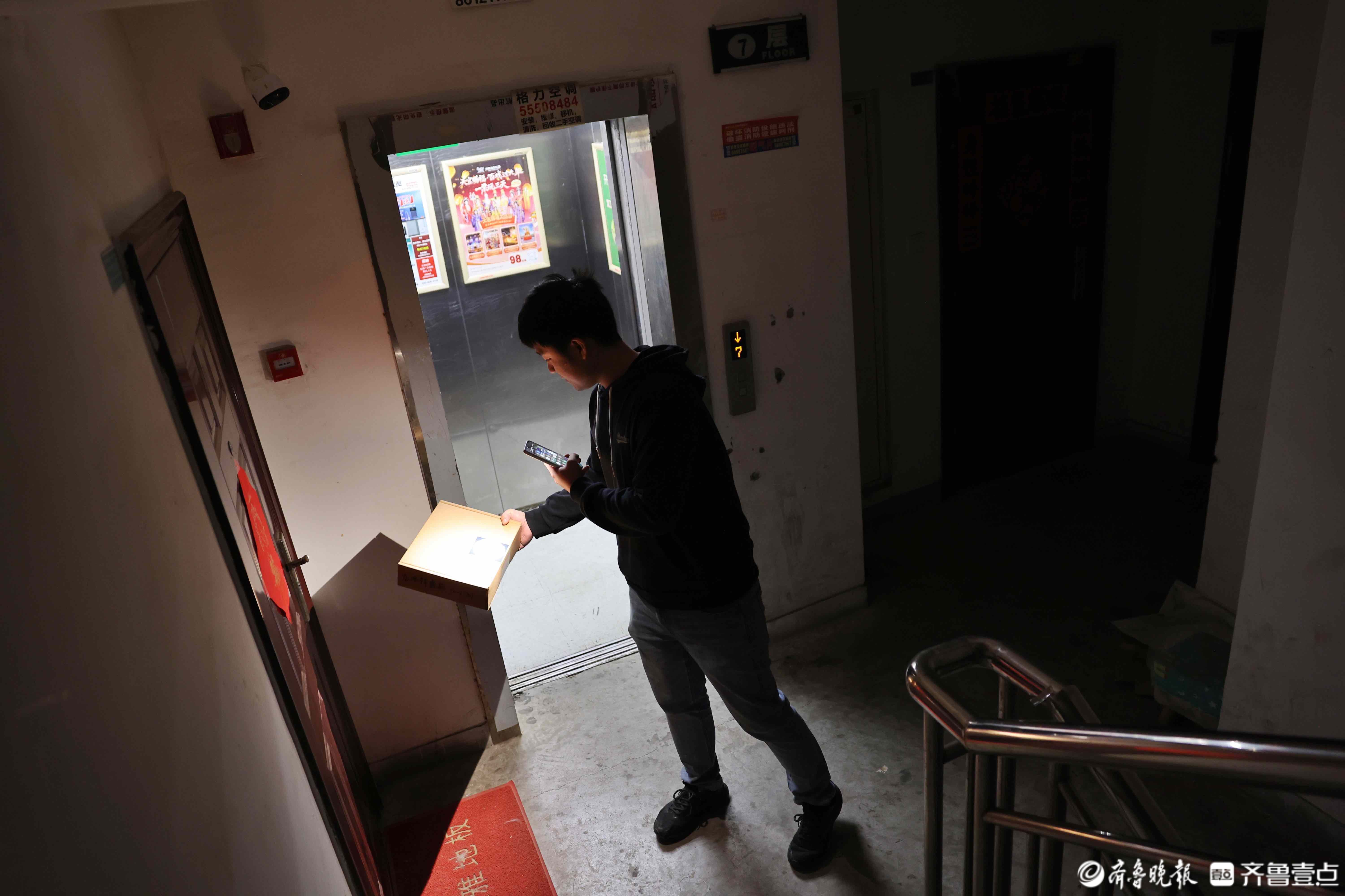 配送是这门生意里最辛苦的部分。“不打电话,不敲门”是他的原则,怕吵醒顾客。遇到声控灯的楼道,他就用手电筒照着,轻手轻脚地上下楼。