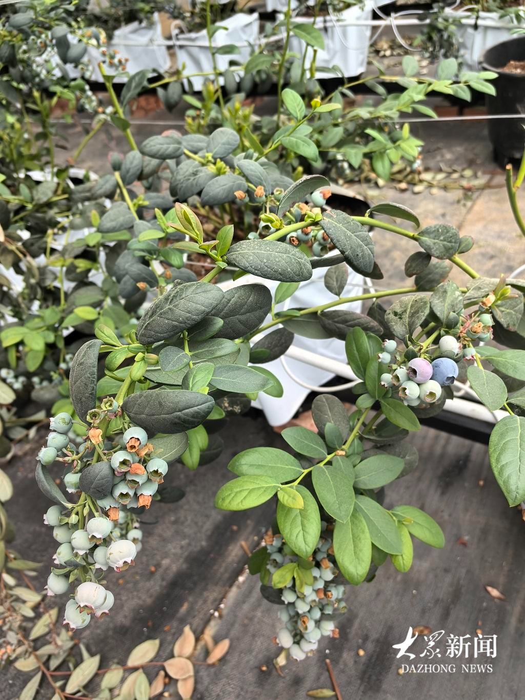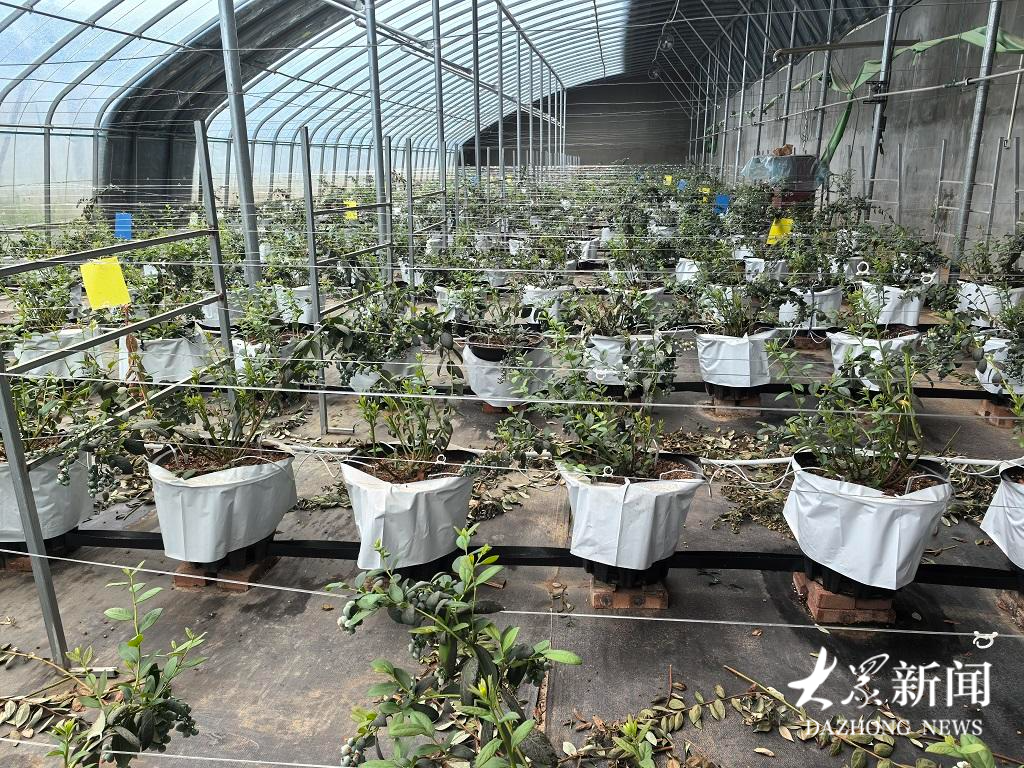 “蓝莓是典型喜酸性植物,适宜生长的土壤pH值需维持在4.0-5.5,最适范围为4.3-4.8。传统土壤种植中,一旦土壤偏碱,蓝莓根系对铁、锌等微量元素的吸收就会受阻,极易出现缺铁性黄化问题,严重时还会造成植株僵苗、甚至枯死,极大制约蓝莓长势。” 孙照华介绍,针对这一种植难题,园区全面采用全基质无土栽培技术,彻底摆脱土地条件限制,规避土壤盐碱化、土传病害等种植痛点,不仅实现了蓝莓植株健壮生长,还达成了提早结果、精细化精准管理的种植目标。