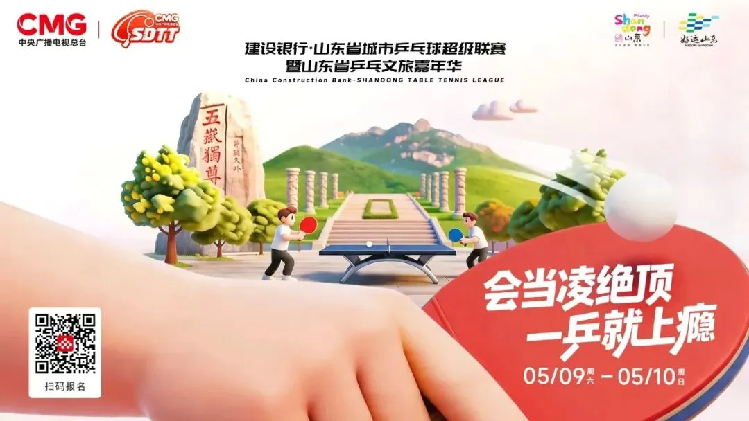 CMG乒乓挑战季——“山东乒超文旅嘉年华”系列活动中,突出全民参与的“乒乓文旅嘉年华”闯关活动将在泰安、日照、临沂、聊城、德州等城市开展,目前泰山站报名已于线上开启,诚邀全国游客共赴“会当凌绝顶”的乒乓之约。聚焦专业竞技的“城市乒乓球超级联赛”于4月18日在潍坊拉开序幕,目前全省各站赛事正有序推进。欢迎全国各地朋友于4月至9月相约山东,挥拍上场,开启属于你的乒乓之旅!