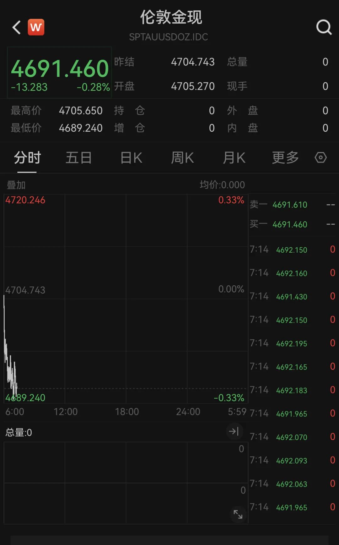 24日,现货黄金震荡下挫,盘中再度跌破4700美元/盎司关口,跌超0.28%。现货白银向下跌破75美元/盎司,日内下跌0.6%。