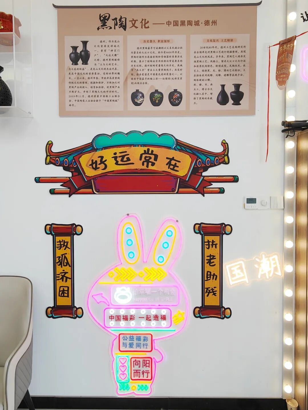 吴新辉经营的这家站点,是一家以黑陶文化为主题的特色福彩店。其最大亮点,便是将德州本土的国家级非物质文化遗产——黑陶文化,与福彩公益理念深度融合。