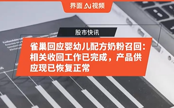 雀巢回应婴幼儿配方奶粉召回:收回工作已完成,供应现已恢复正常