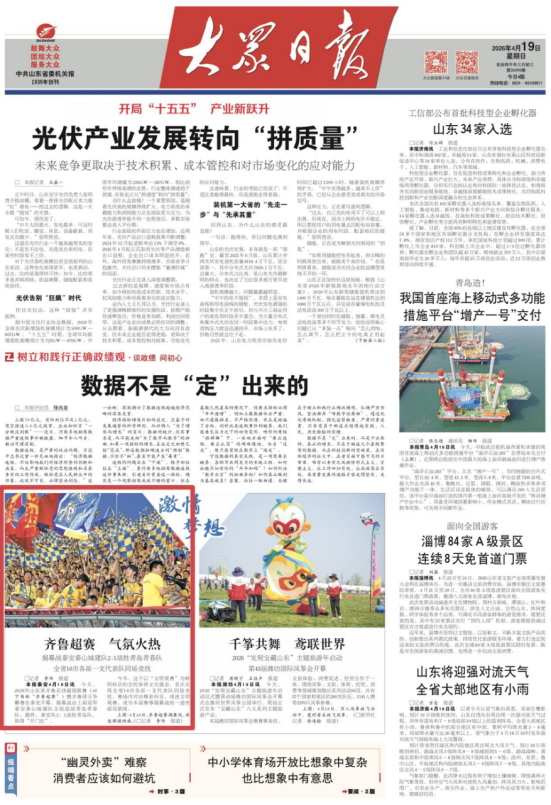 4月19日,头版刊发《齐鲁超赛气氛火热》,报道2026年山东省齐鲁足球超级联赛(以下简称“齐鲁超赛”)暨齐鲁球王争霸赛在泰安开幕。