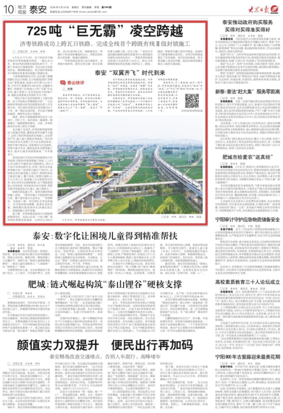 大众日报·泰安一周:策划/济枣铁路让泰安双翼齐飞;齐鲁超赛和肥城农业分别走上一版和要闻
