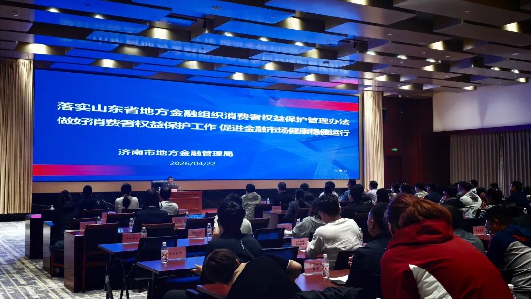 2026年4月22日下午,济南市地方金融管理局在济南财金大厦召开《山东省地方金融组织消费者权益保护管理办法》专题讲座。各区县地方金融组织监管部门、济南市民间资本和小额贷款机构协会、济南市泉城金融矛盾调解中心相关负责同志及全市120余家地方金融组织代表参加。