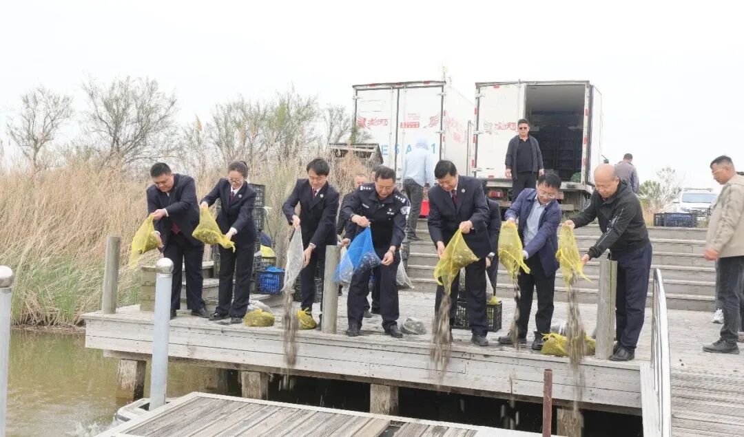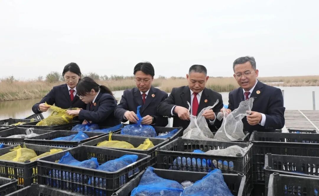 东营市垦利区人民检察院联合多部门开展中华绒螯蟹增殖放流活动
