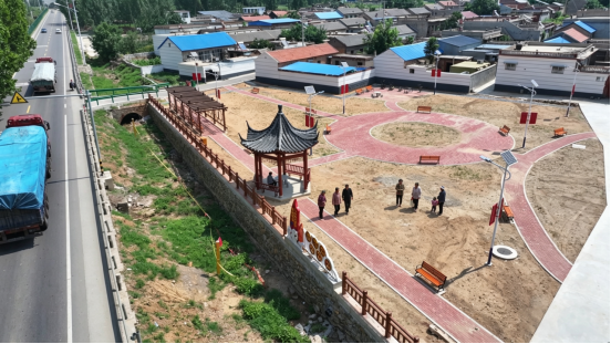 经过紧张施工,曾经的“臭坑塘”脱胎换骨:回填土方6000立方米,垃圾堆场被平整为占地3000平方米的文化广场,广场中央建起党群“连心亭”,健身器材、太阳能路灯配套齐全;同步修通的硬化路,将广场与村主干道连为一体,方便村民往来。广场周边种上冬青、月季和泰山松,曾经的“环境伤疤”成了村民家门口的“会客厅”。