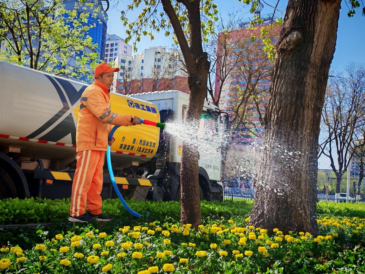 园林养护不停歇 扮靓城市迎五一