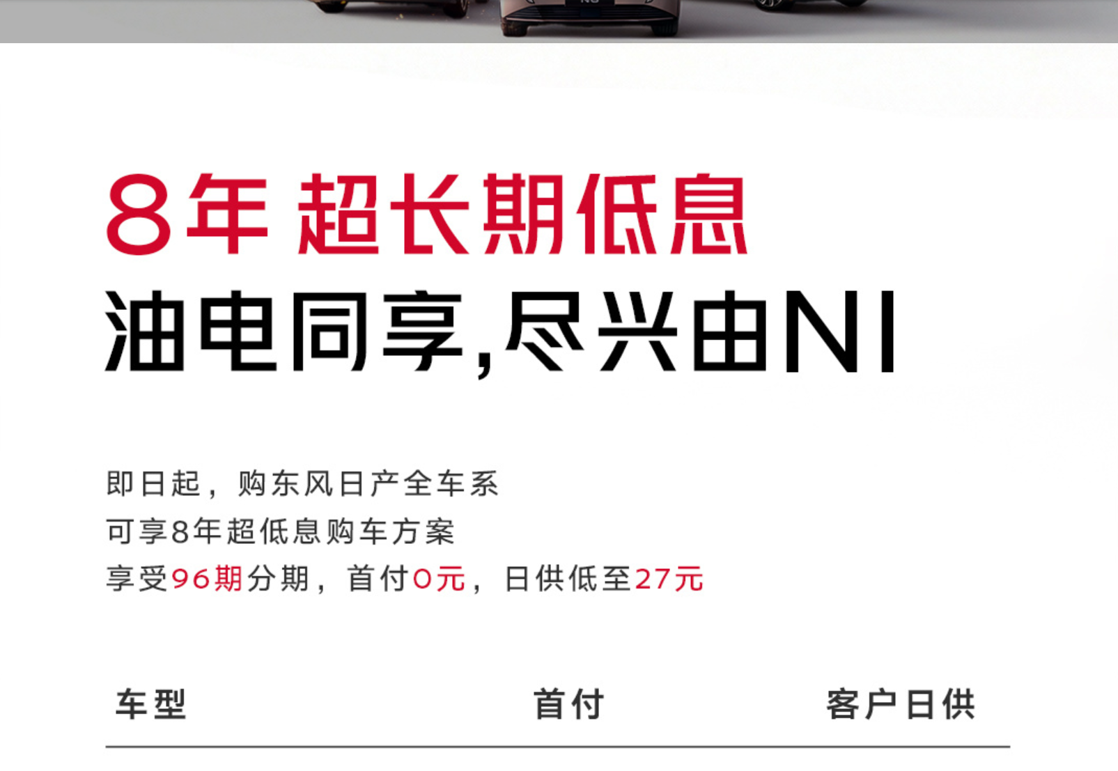 东风日产更是将车贷“卷到”了8年。2026年2月4日,东风日产官方公布一购车政策,旗下天籁·鸿蒙座舱推出限时金融方案:0首付、8年超长低息贷款,日供低至55元。