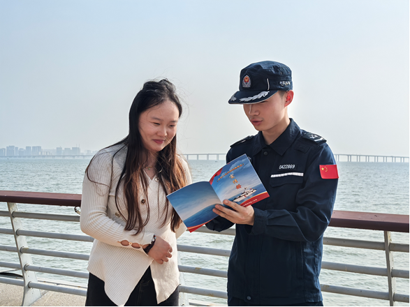 为进一步增强辖区渔民群众法治意识,规范海洋渔业生产秩序,切实维护辖区海洋权益和渔业资源的可持续发展。近日,青岛海警局李沧工作站组织开展了新修订《中华人民共和国渔业法》宣贯活动,以“学法守法护渔航,共建共治护海疆”为主题,普法下沉一线,服务贴近渔民,取得了良好的宣传成效。