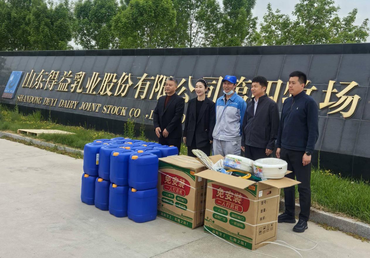 为扎实筑牢畜牧养殖安全屏障,从源头守护乳制品质量安全,4月21日,中国人寿财险淄博市中心支公司联合高青县财政局、木李镇人民政府,走进得益乳业高青牧场开展防疫物资爱心捐赠活动,现场捐赠过氧乙酸消毒剂1200斤、高压打药机两台。正值春季动物疫病高发关键期,此次精准捐赠切实助力牧场夯实疫病防控基础,为地方奶业产业链健康有序发展保驾护航。