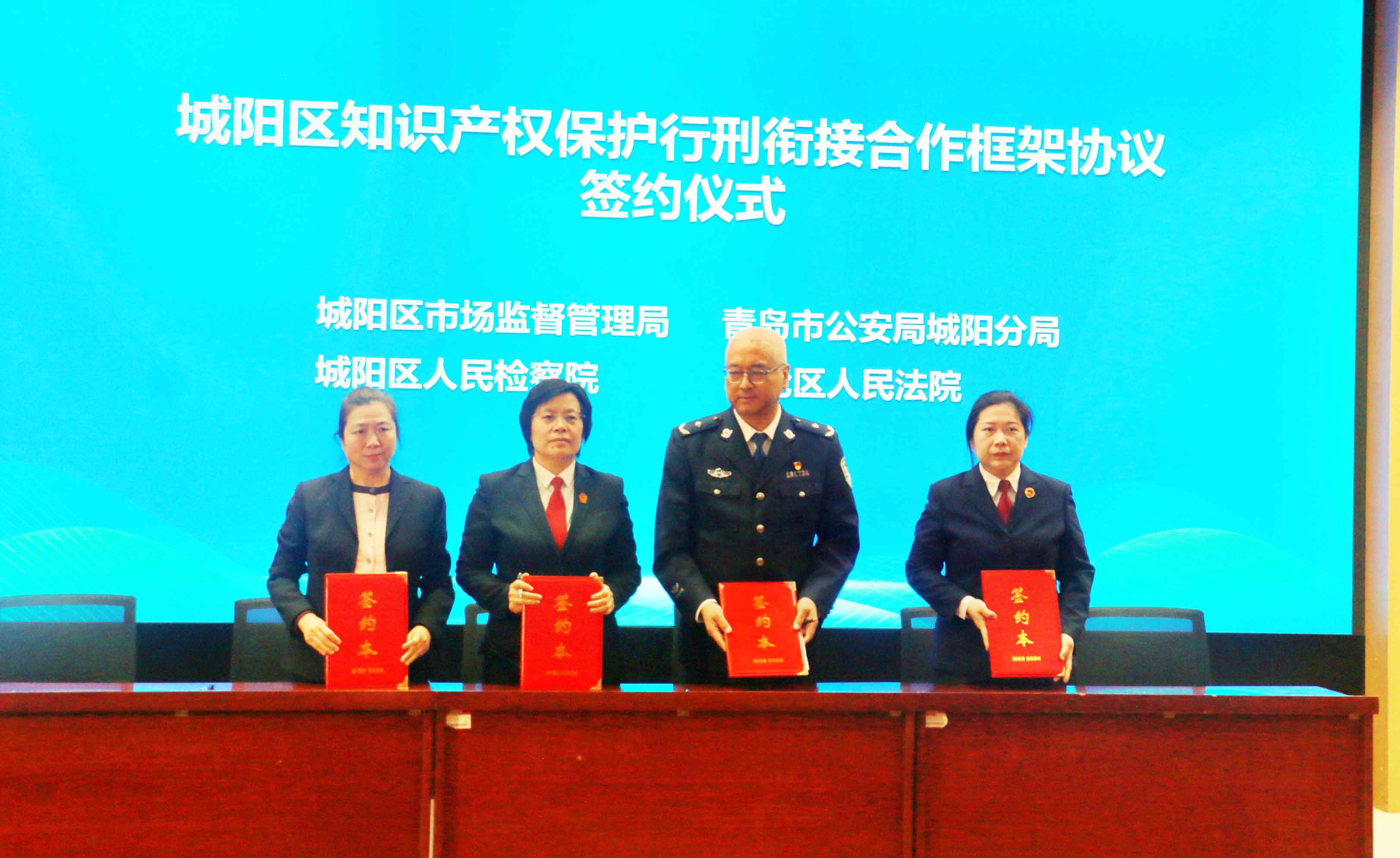 4月21日,李沧法院与城阳区市场监督管理局、青岛市公安局城阳分局、城阳区人民检察院,在青岛农业大学共同签订了《知识产权保护行刑衔接四方合作框架协议》。协议规定了核心框架与基础原则,并明确了各核心部门的职责分工、协作机制、实施要求等,以进一步强化知识产权协同保护,积极构建行刑衔接知识产权框架体系。