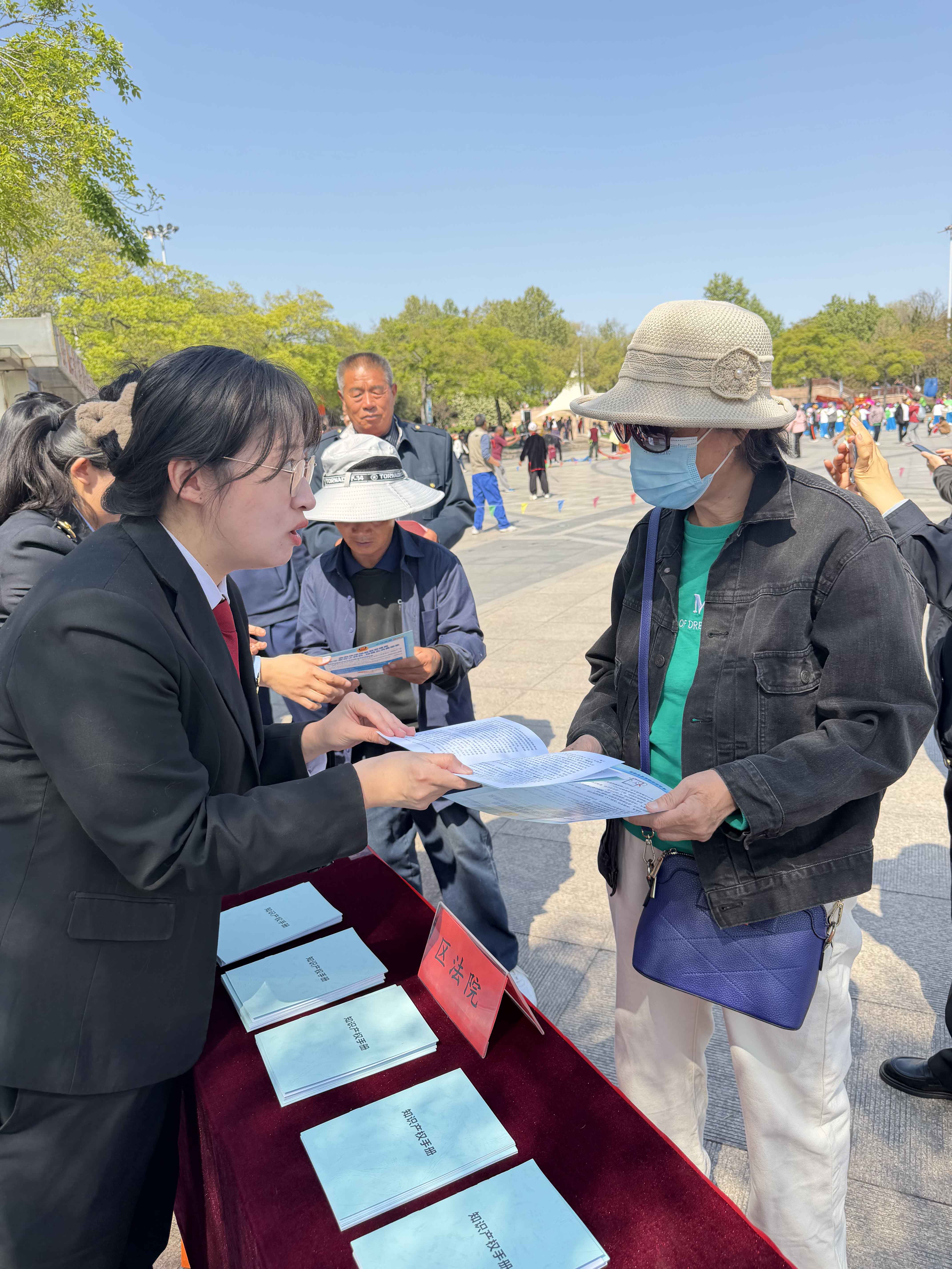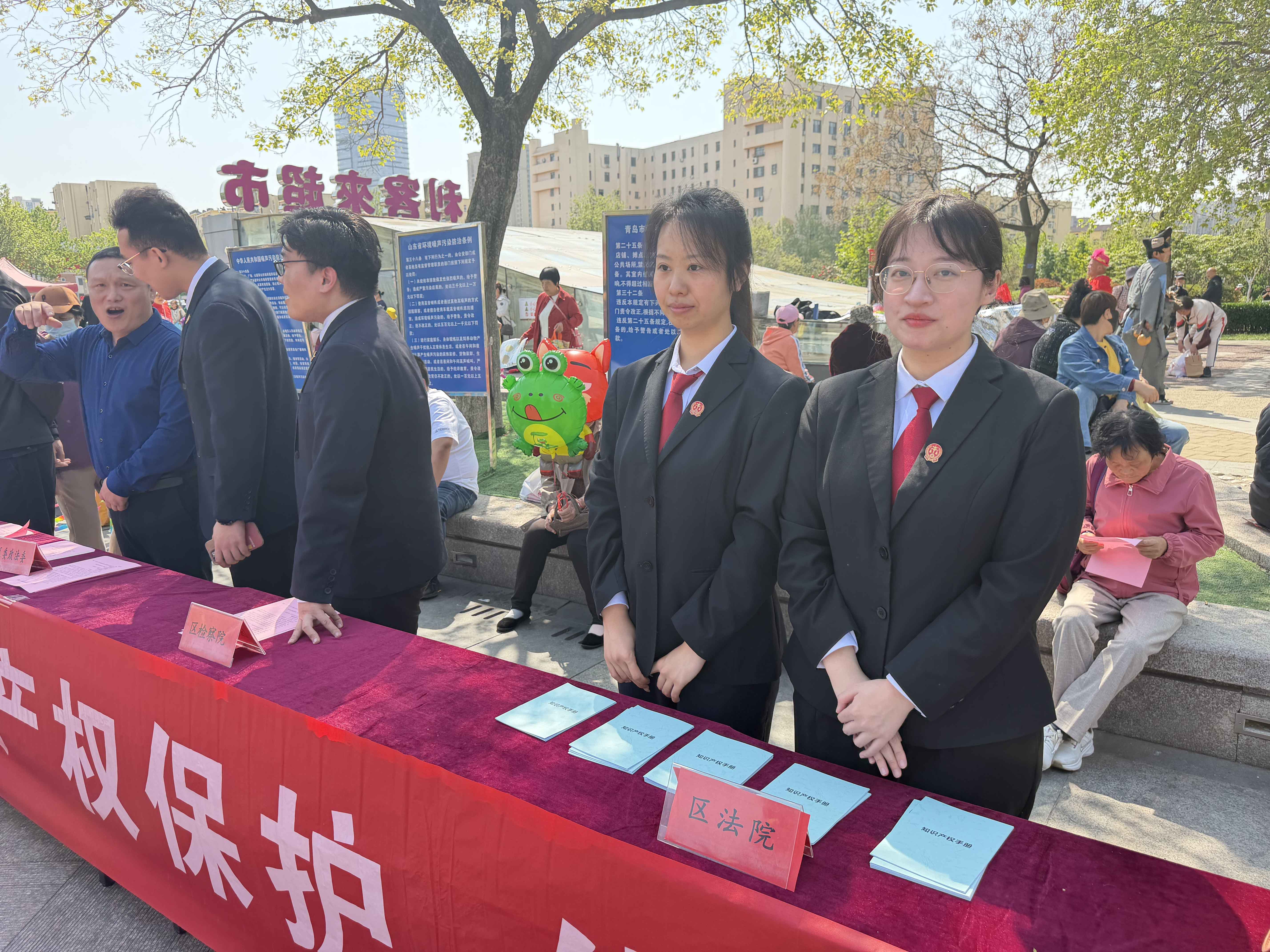 4月24日,李沧法院与李沧区市场监督管理局、李沧区检察院、青岛市公安局李沧分局、李沧区司法局、李沧区金融办、李沧区烟草专卖局等在李村公园开展知识产权普法宣传活动。