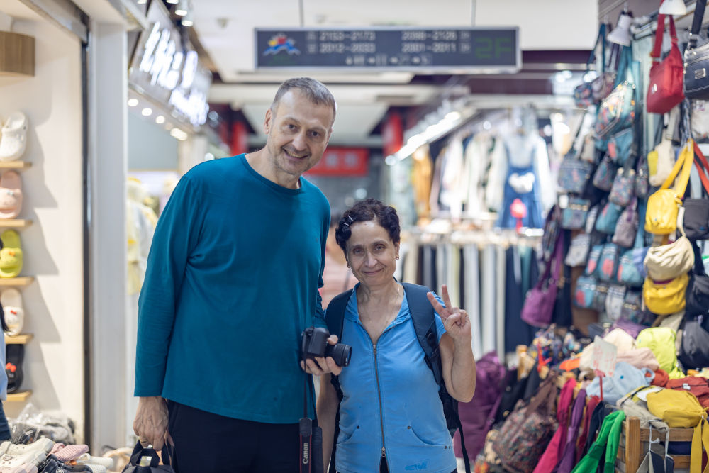 ↑ 4月22日在重庆市渝中区新重庆国际小商品批发中心拍摄的德国游客,这是这对夫妇第7次来中国旅游。