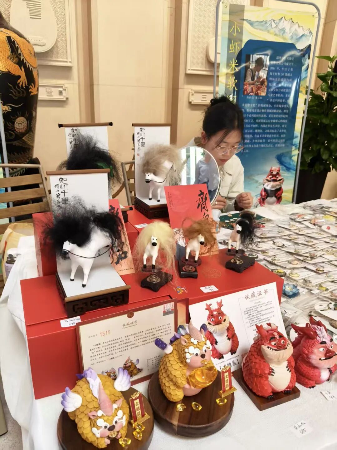 4月23日,作为淄博市非遗项目(软陶制作)的保护与传承单位,小虾米软陶在新疆非物质文化遗产馆启幕的“齐鲁青未了——山东非遗引进展”中亮相。此次展览以“静态展示+活态展演”的形式,集中呈现鲁新两地非遗精华。“马彪彪”跨越千里,与新疆观众展开了一次面对面的文化对话。