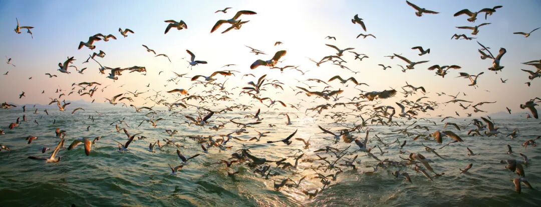 周边海域鱼虾丰沃,渔港密集、渔船穿梭,为黑尾鸥提供了稳定而丰富的食物。
