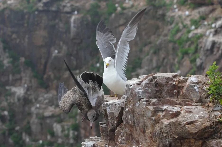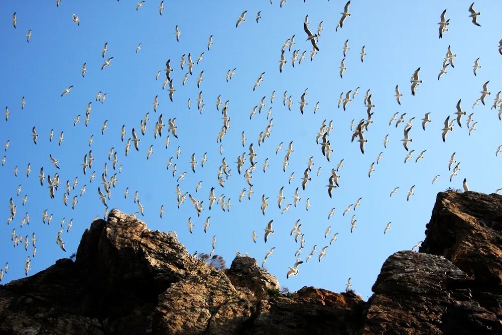 海鸥的繁殖季从四月开始会一直持续到七八月,所以海驴岛的赏鸥季是贯穿春夏的。而海鸥对这座岛情有独钟,只因三个“刚刚好”:无人打扰的清净、悬崖峭壁的“理想户型”、出门就是“海鲜自助”。