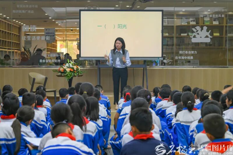 4月23日,学生在喀什市图书馆聆听阅读分享。石榴云/新疆日报 记者约提克尔·尼加提 摄