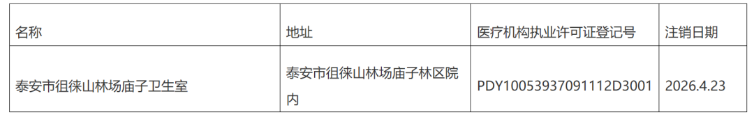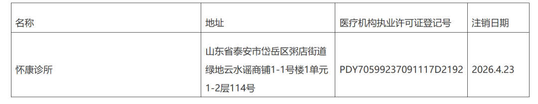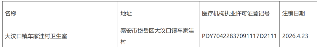 4月23日,岱岳区人民政府网站发布医疗机构注销公告,详情如下: