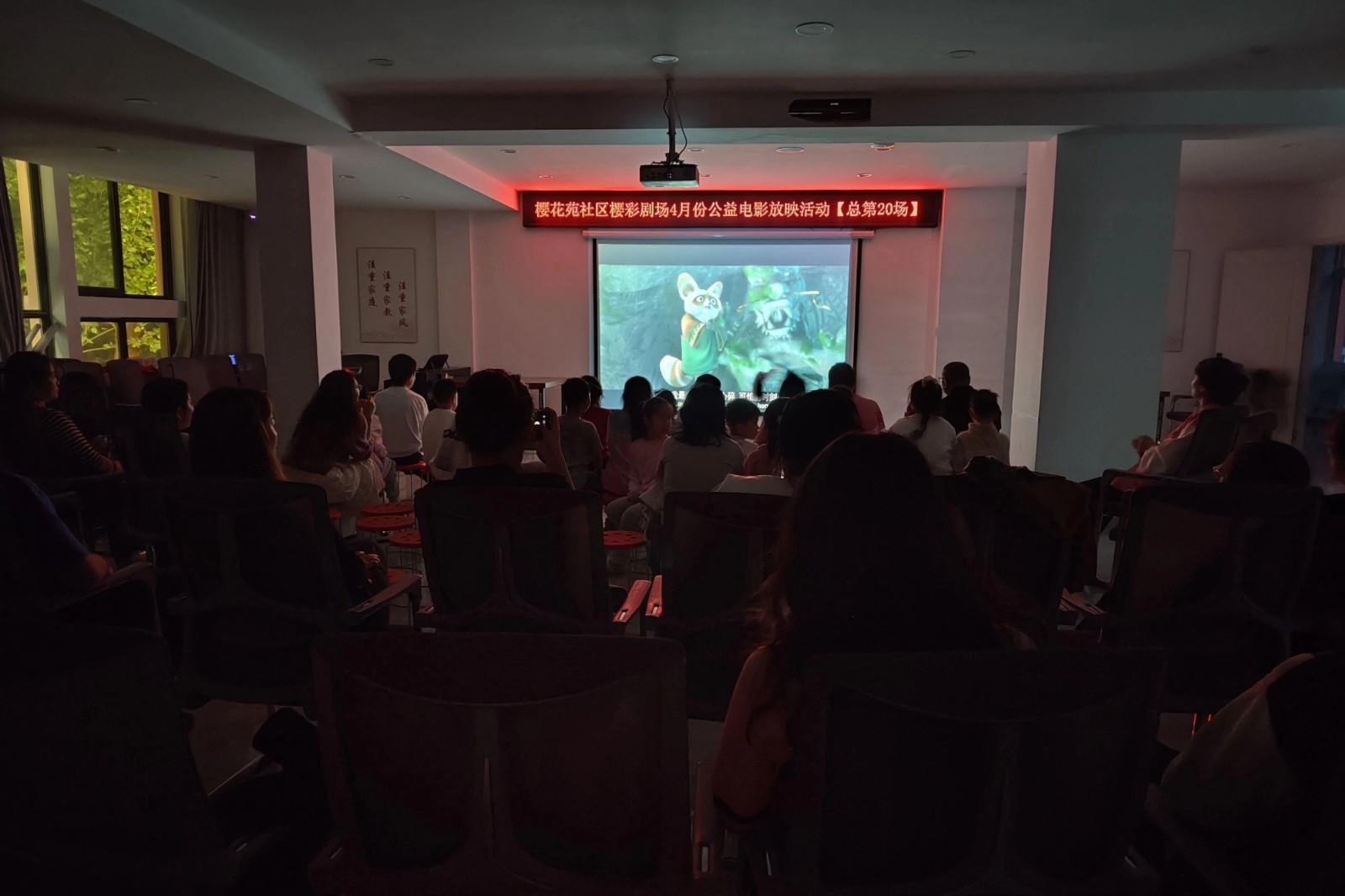 《功夫熊猫2》这部影片,讲述了爱吃爱玩的平凡熊猫阿宝,意外成为神龙大侠,一路克服困难、坚守初心,最终实现成长逆袭的趣味故事,剧情欢快热血、全程无虐点,看着格外解压。观影现场也格外温馨:小朋友们盯着荧幕目不转睛,看到搞笑桥段忍不住放声大笑;大人们放下日常忙碌,陪着孩子沉浸式观影,重拾童真快乐;长辈们闲坐一旁,看着热闹的画面、身边嬉笑的邻里,满是闲适惬意,一家人、一众邻里,围坐在一起共享光影时光,氛围感直接拉满。