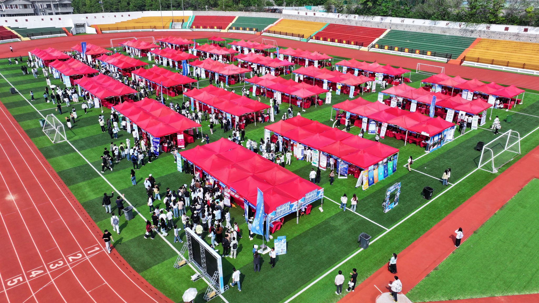 4月23日下午,山东财经大学2026年度毕业生第三场就业双选会在舜耕校区田径场举行。副校长刘旻航,山东省教育厅高校学生处处长梁立波,济南市民营经济发展局党组成员、副局长张涛,校学生工作部部长杨哲等深入现场,与用人单位和求职学生交流,了解企业招聘需求与毕业生求职意向。