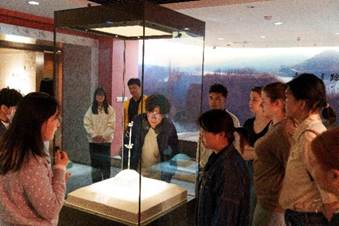中外学生走进山东大学博物馆。在专业讲解员的带领下,同学们近距离探访馆藏文物遗存,通过陶器演变、稻作遗存等实物,直观感受早期文明从萌芽到繁荣的清晰脉络。在跨文化的对话中,进一步加深了同学们对中国古代社会生活、文化信仰与审美理念的认知,也拉近了与中华文化的距离。沉浸式的文化探访让同学们跳出书本,在真实的文明现场读懂中文背后的历史温度。