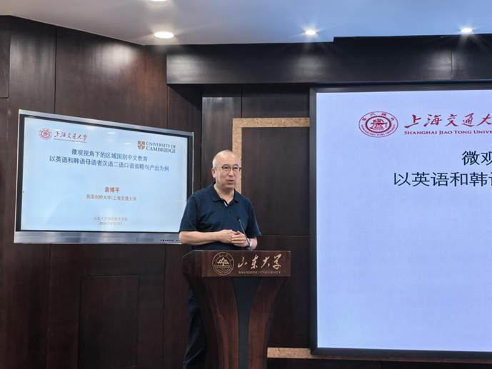 围绕“点亮未来·文明互鉴”主题,学院依托“海岱讲坛”“海岱新声”等学术交流平台,邀请多位海内外知名学者开展系列高水平学术讲座。英国剑桥大学袁博平教授立足区域国别视角,通过对英语、韩语母语者汉语习得过程的实证研究,揭示了跨语言因素与语言输入机制对学习者表达的影响路径;澳大利亚昆士兰大学陈平教授从语言学理论演进出发,系统梳理了从传统语法到大语言模型的发展脉络,深入探讨语言结构与智能技术关系;暨南大学郭熙教授则聚焦海外华语传承,结合东南亚区域实践经验,深入分析华语在多元语言生态中的延续动力与实现路径。系列讲座从理论建构、实证研究到传播实践多维展开,呈现出语言、文化与社会互动发展的整体逻辑,进一步深化了师生对中外文明交流互鉴的理解。