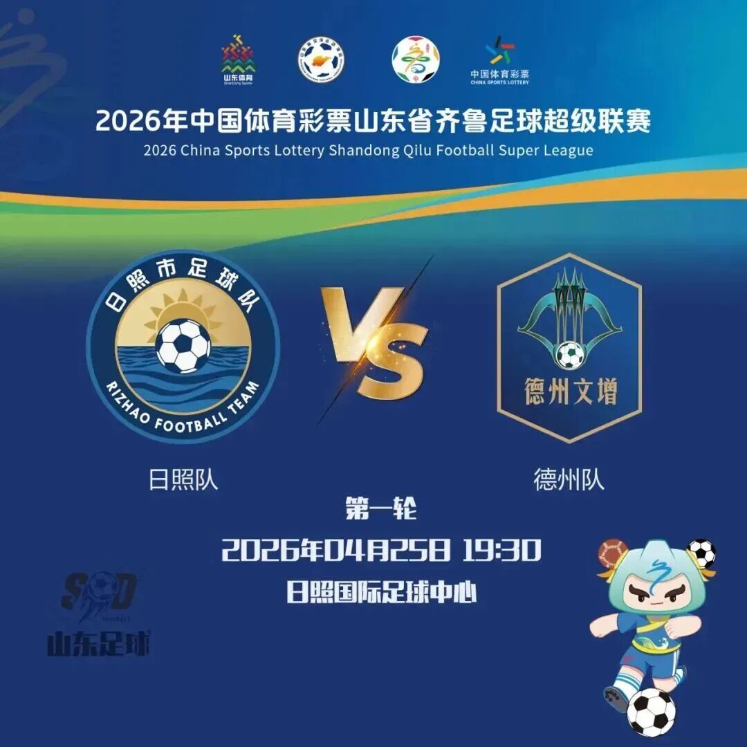 4月25日(周六)19:30,2026山东省齐鲁足球超级联赛日照赛区将在日照国际足球中心火热开赛!日照队坐镇山海主场,迎战德州队,开启新赛季!