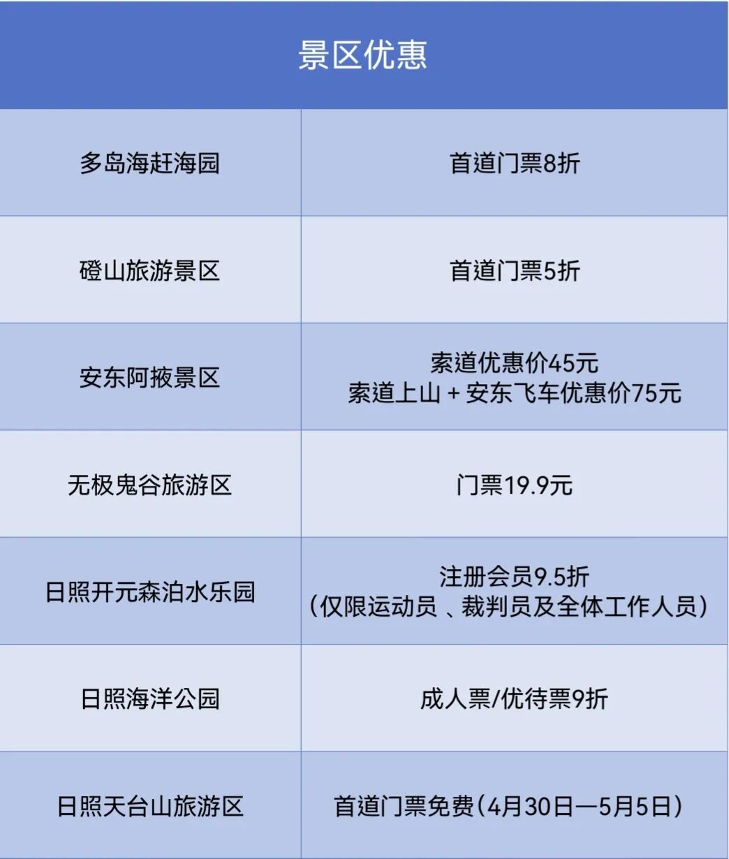 优惠需持齐鲁超赛相关证件或票根享受,具体以景区现场公告为准。优惠最终解释权归各企业所有。